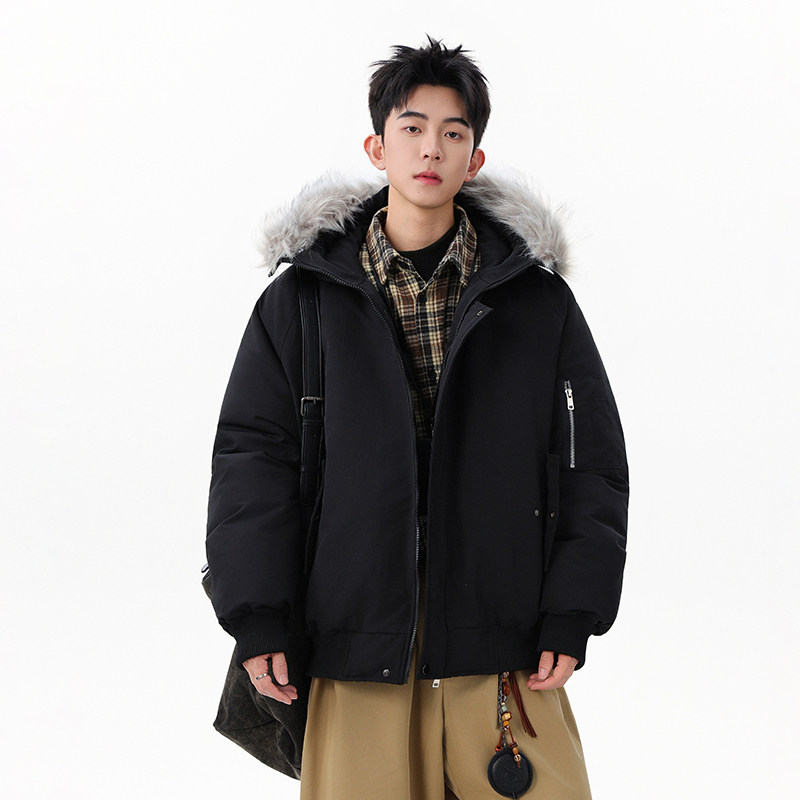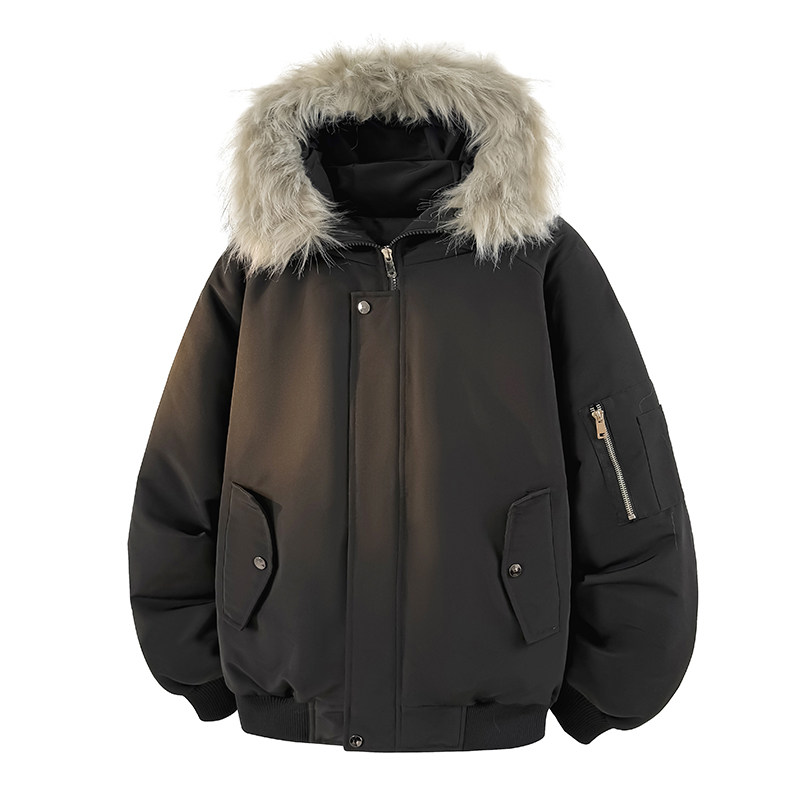 黑色休闲百搭连帽夹克上衣 胖mm双面穿毛绒棉服外套女冬季 大码 女装