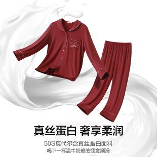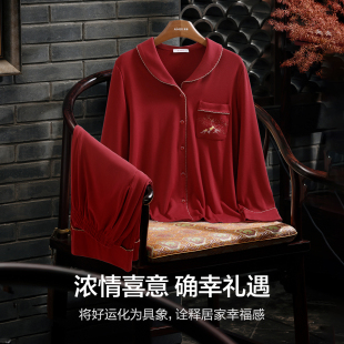 爱慕日照金山系列睡衣男女情侣红品含桑蚕丝舒适抗静电家居服套装