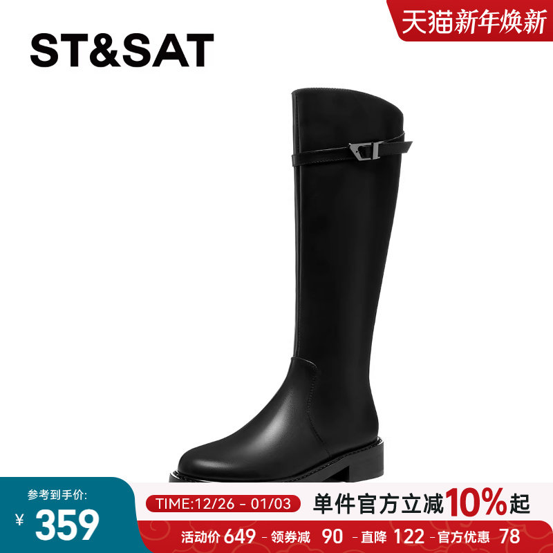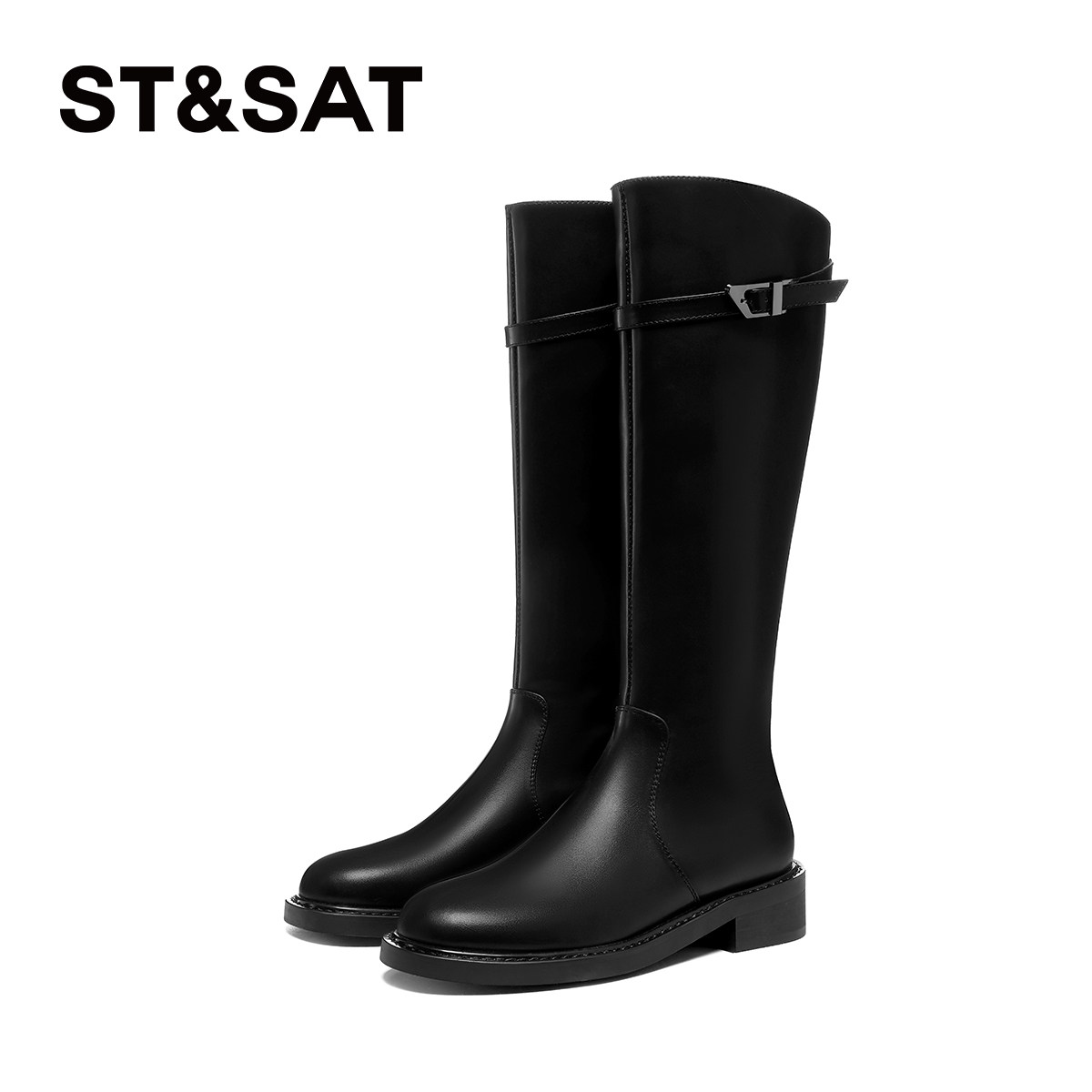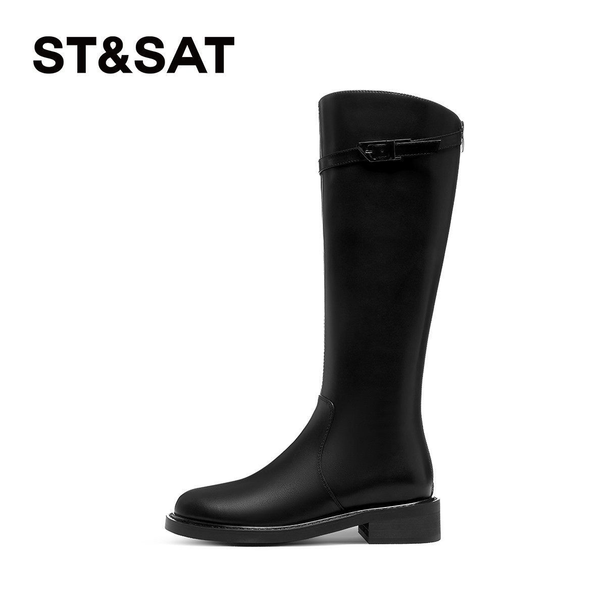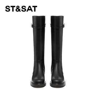 靴皮靴 时装 吴宣仪天美意千金靴复古厚底骑士靴加绒长靴女鞋 子新款