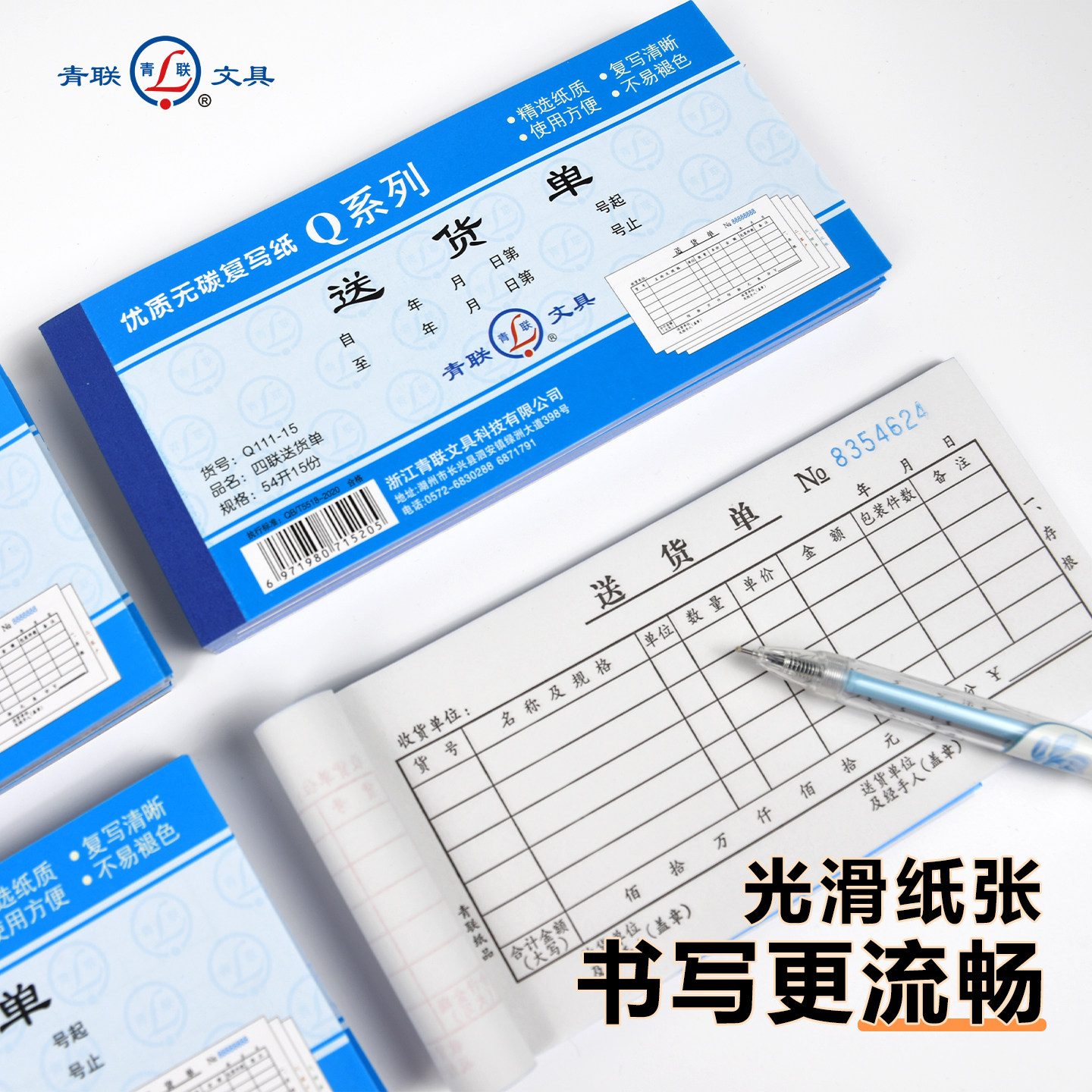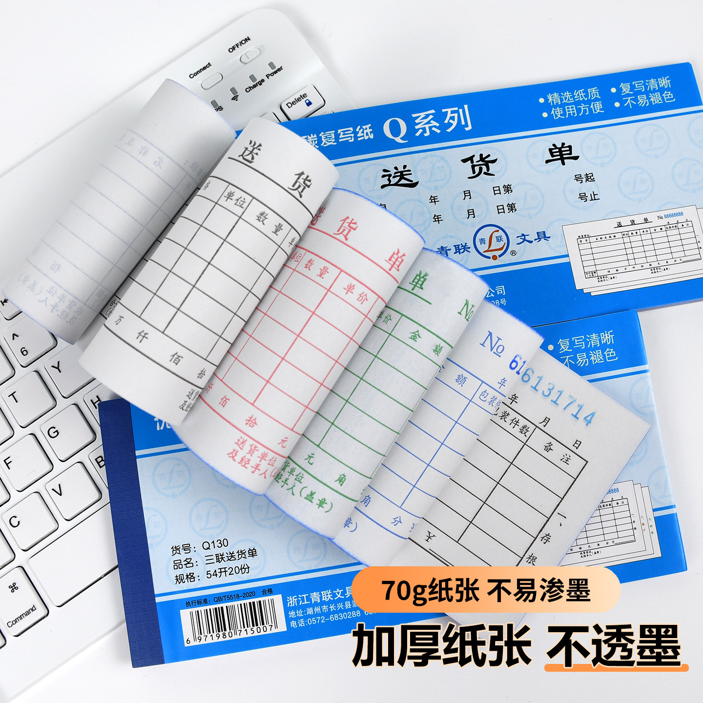 青联Q系列54K送货单二联三联四联单通用优质无碳复写纸手写加厚发货单销货清单两联出库单据销售清单出货单据