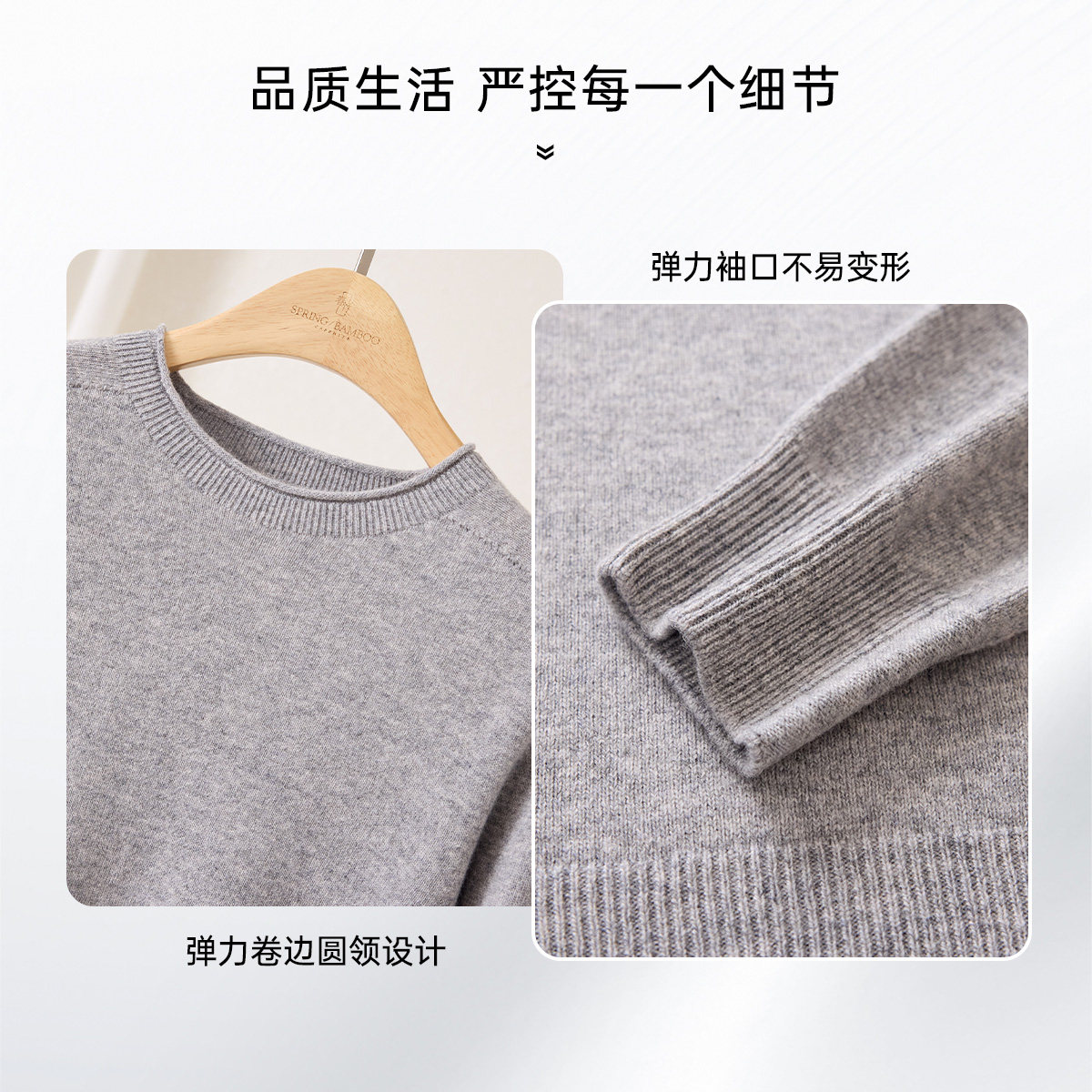 羊毛衫 春竹无缝100%羊毛26春季 女薄款 卷边圆领纯色减龄打底衫 新款