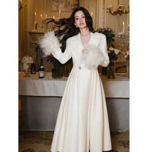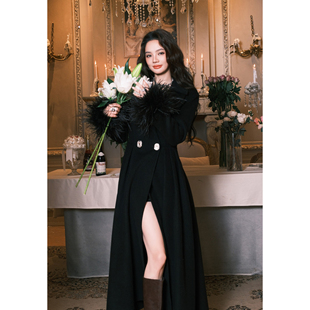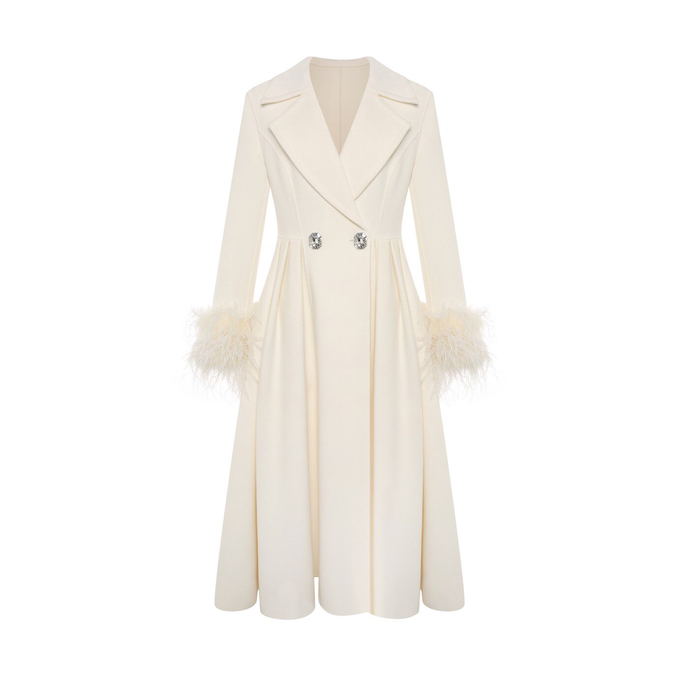 口羽毛钻扣翻领毛呢大衣 复古袖 Maison Wester25秋季