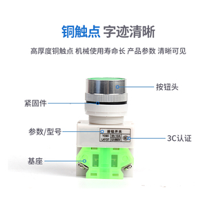 平头按钮22MM 自复位 11BN LAY37 Y090常开常闭 自锁按钮开关