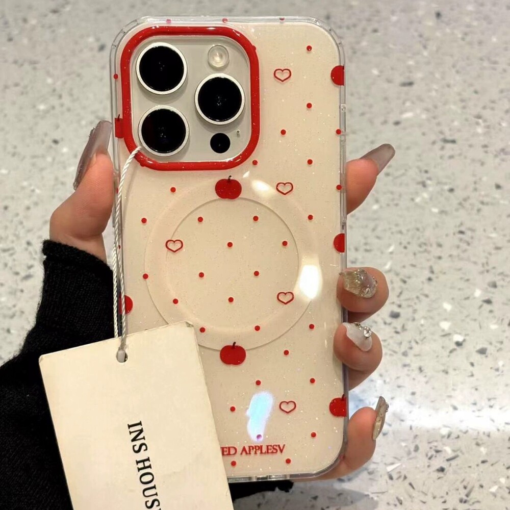 OPPO 日韩ins红色波点苹果磁吸支架适用A5 X8ultra A6pro硬K11 Reno15 A58 A98 11手机壳Find