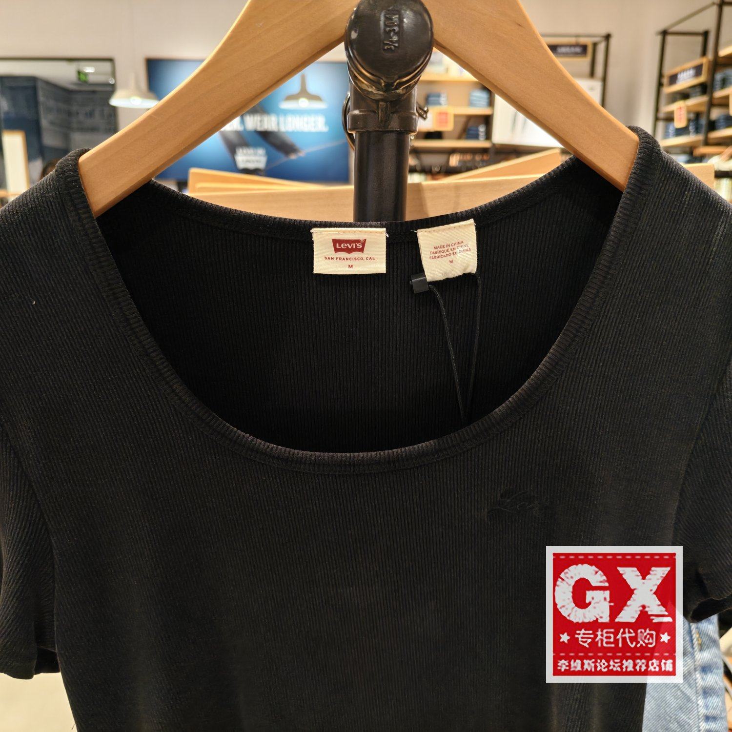 T恤003SU 休闲女士黑色U领短袖 0000 levis李维斯2025夏时尚 正品