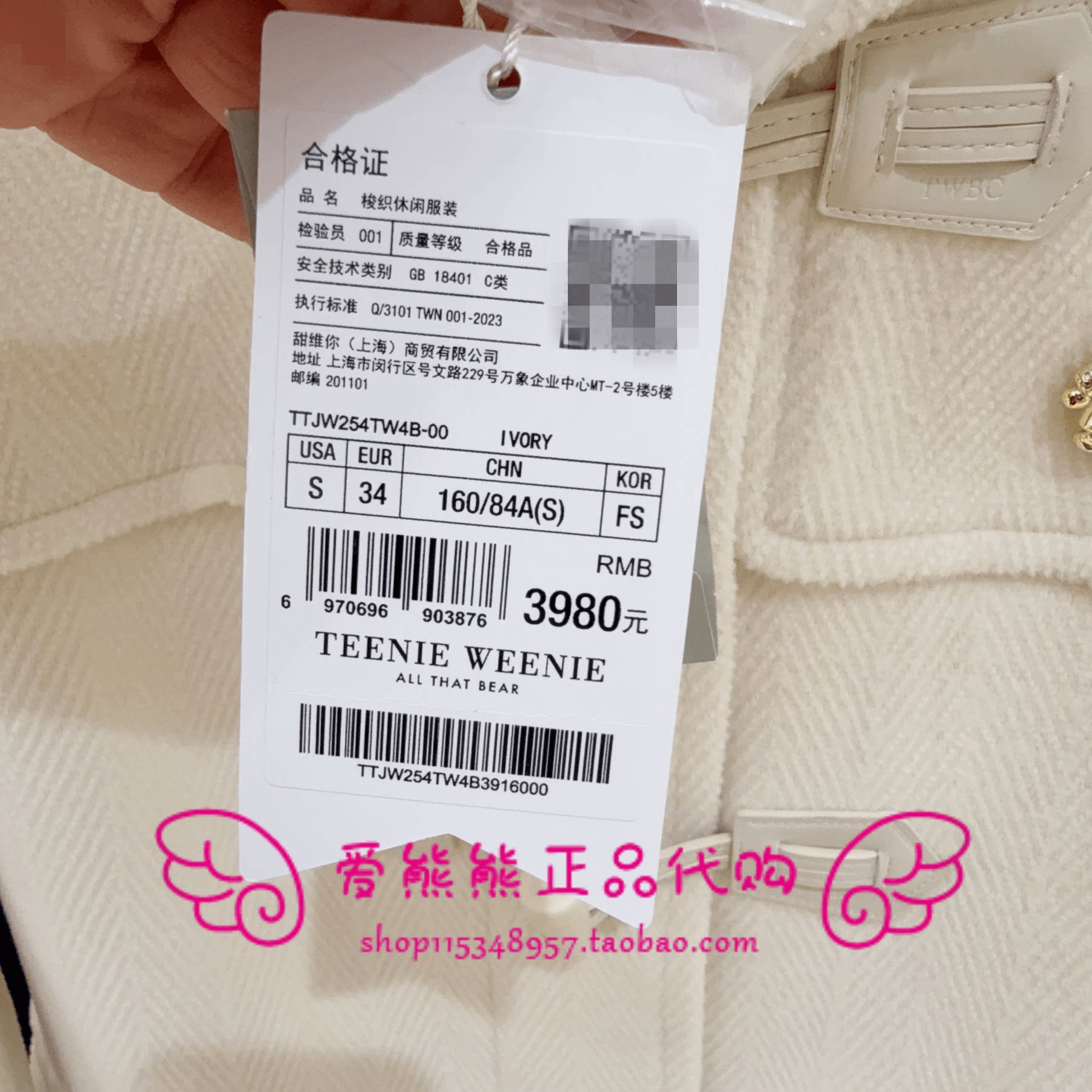 大衣TTJW254TW4B JW254TW4B 正品 现货TeenieWeenie小熊25冬款