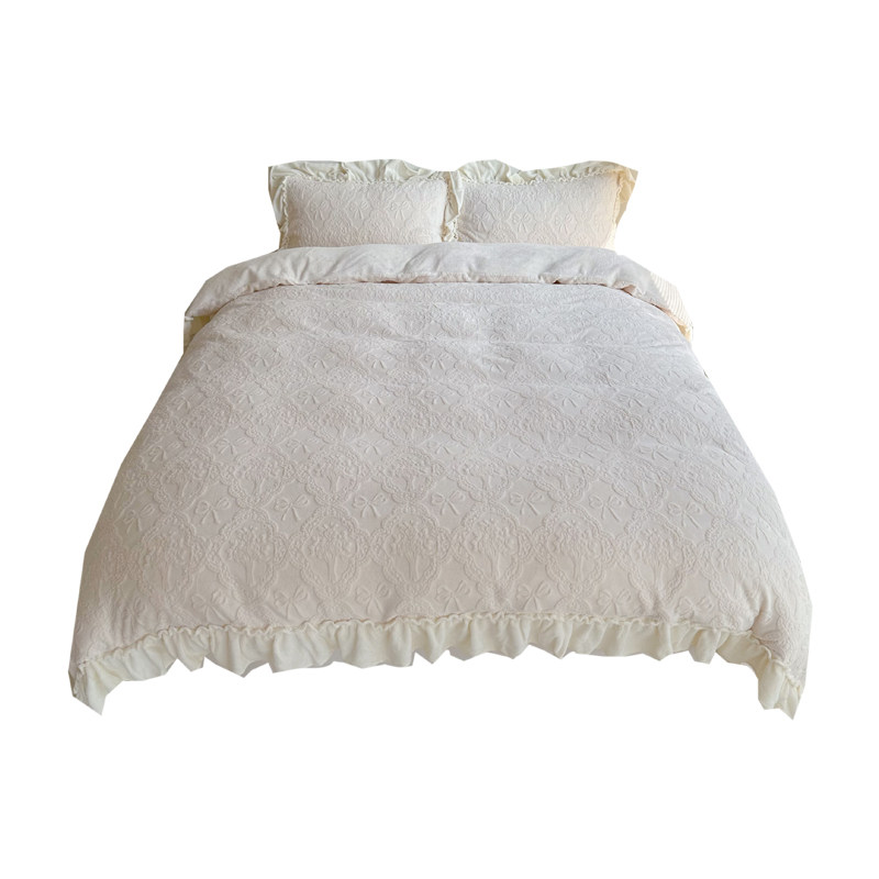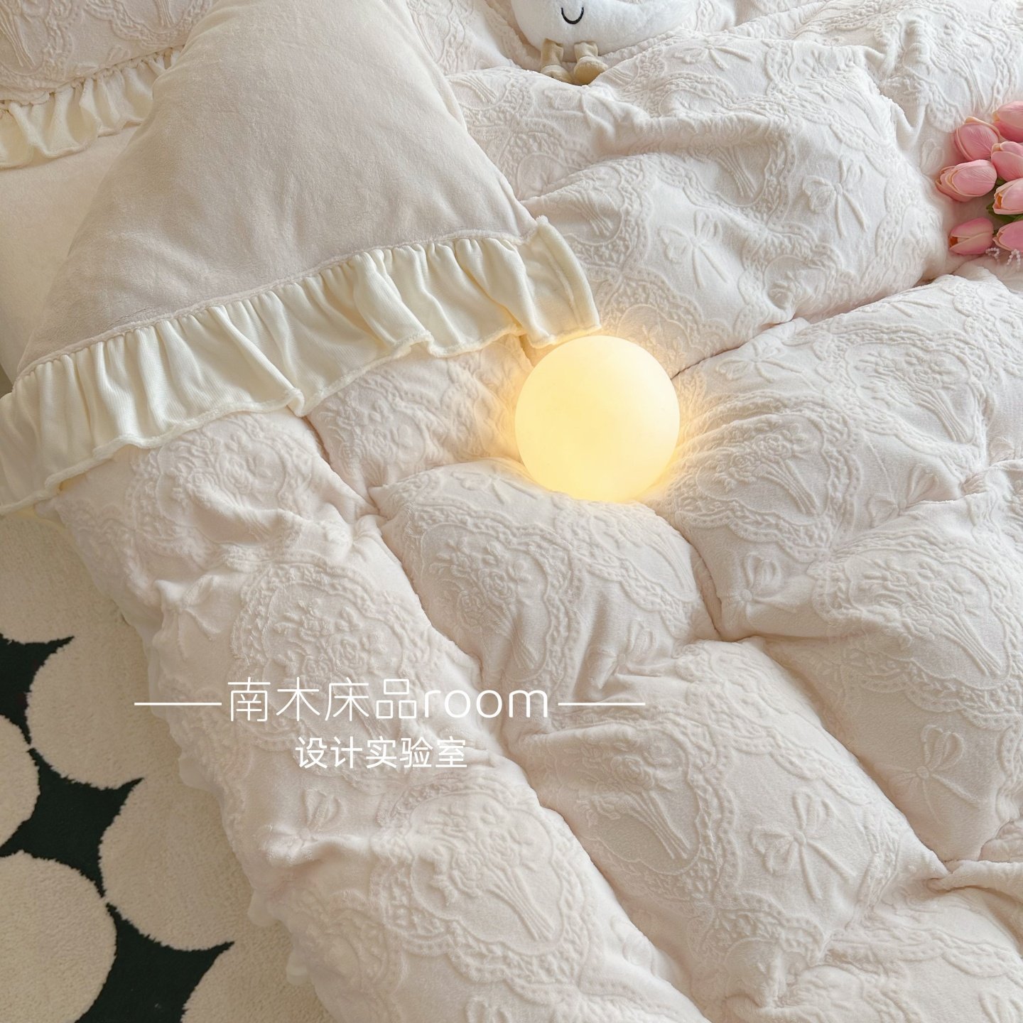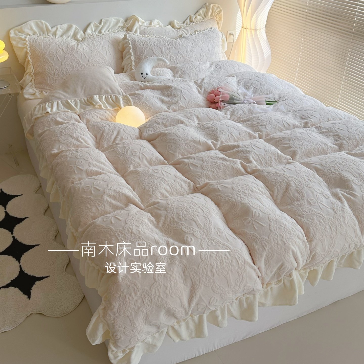 浪漫冬天|法式 1.8m床笠法莱绒 奶油白加厚保暖牛奶绒四件套花边款