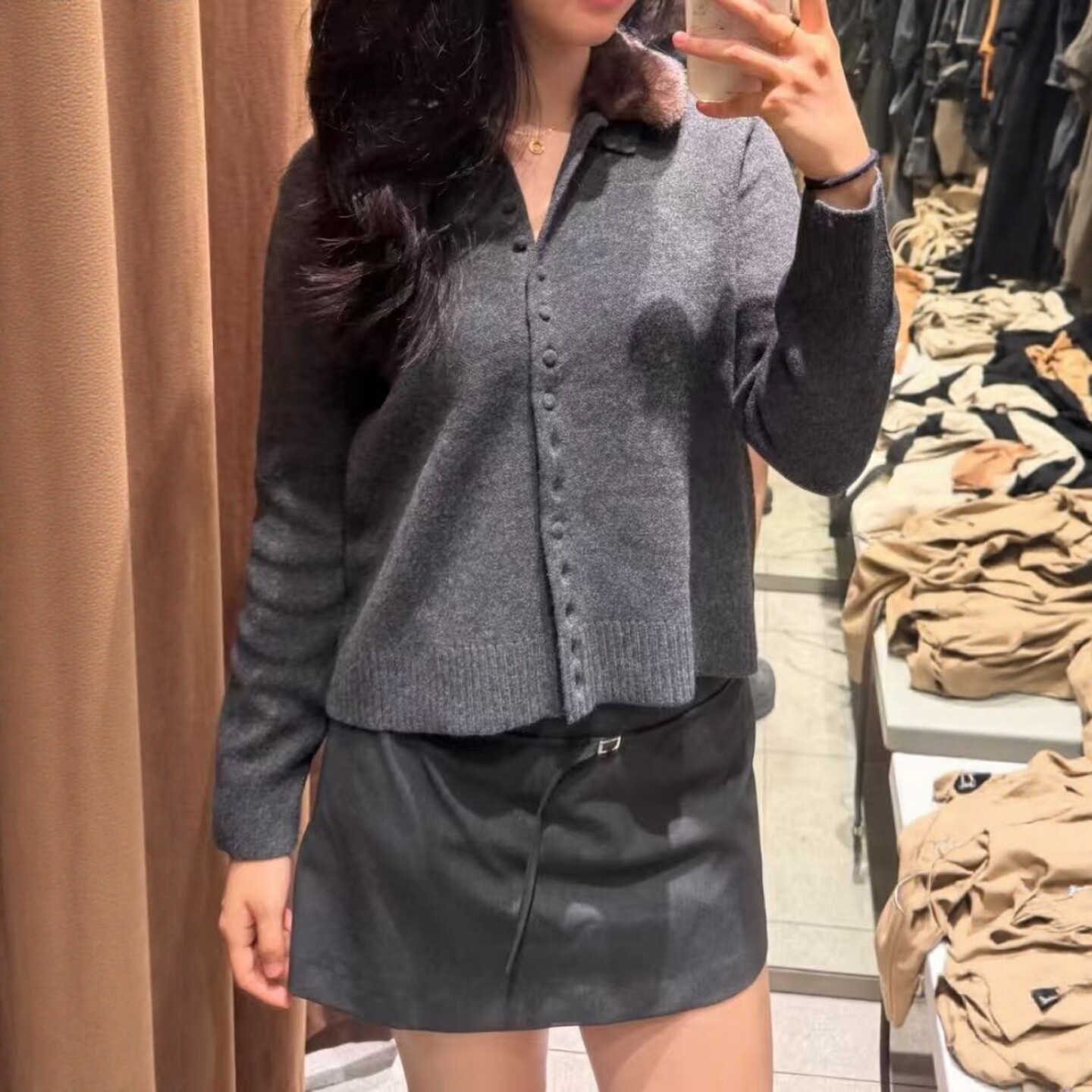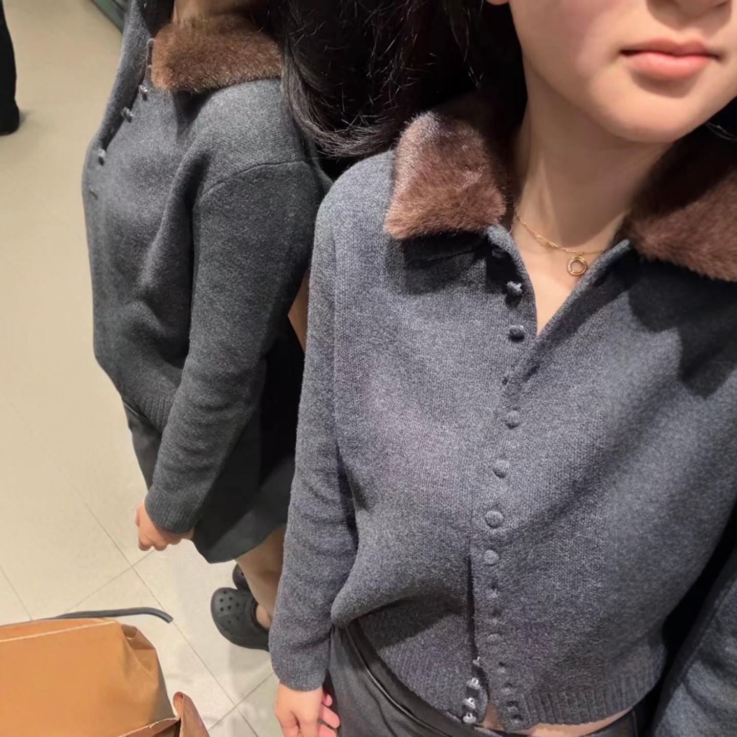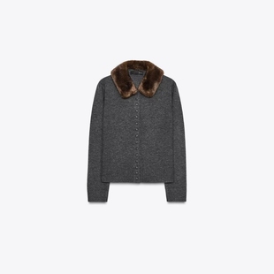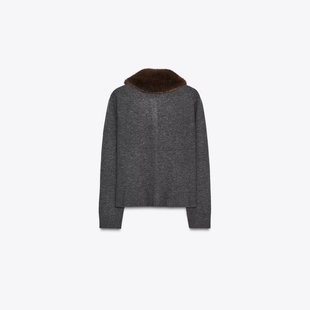 2756 ZA外贸出口女装 饰人造皮草效果翻领针织外套 排扣装 105 新款