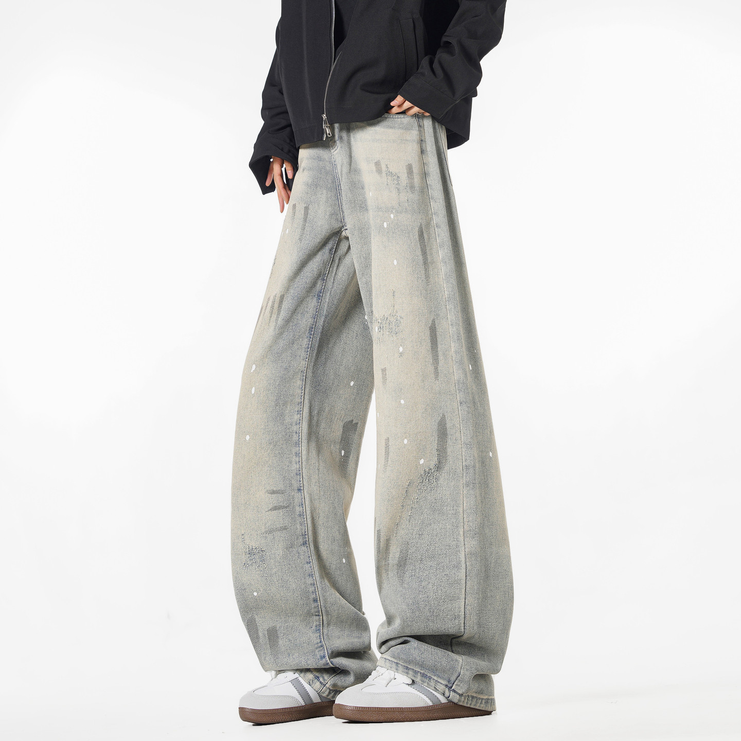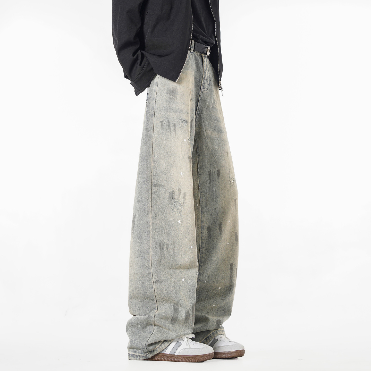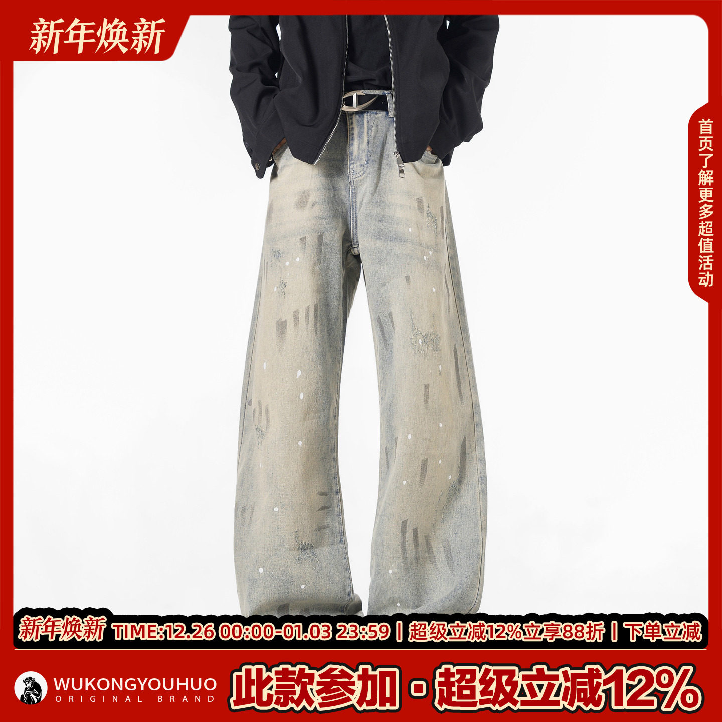 男街头宽松cleanfit百搭长裤 悟空有货潮牌美式 水洗做旧弯刀牛仔裤