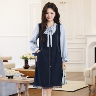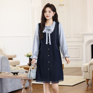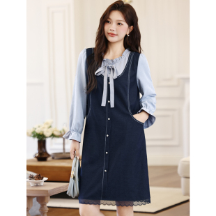 显瘦胖妹妹直筒遮肉显瘦百搭长袖 大码 新款 秋冬装 假两件连衣裙 女装