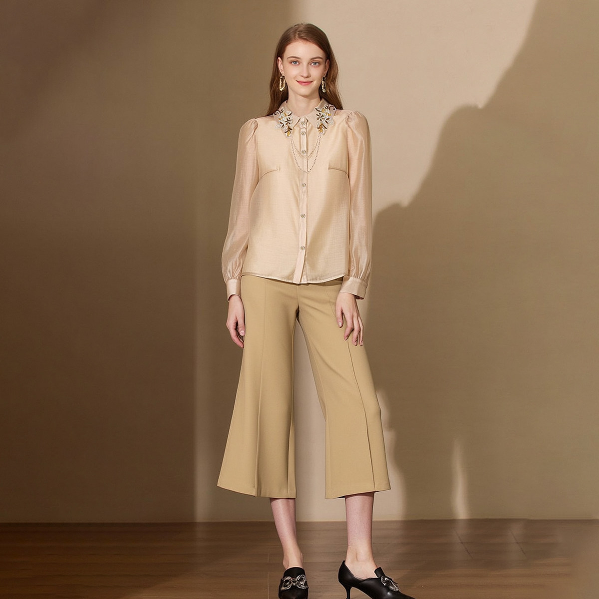 串珠贴花方领珠链气质衬衫 659 春季 蕾 165 72%粘胶纤维