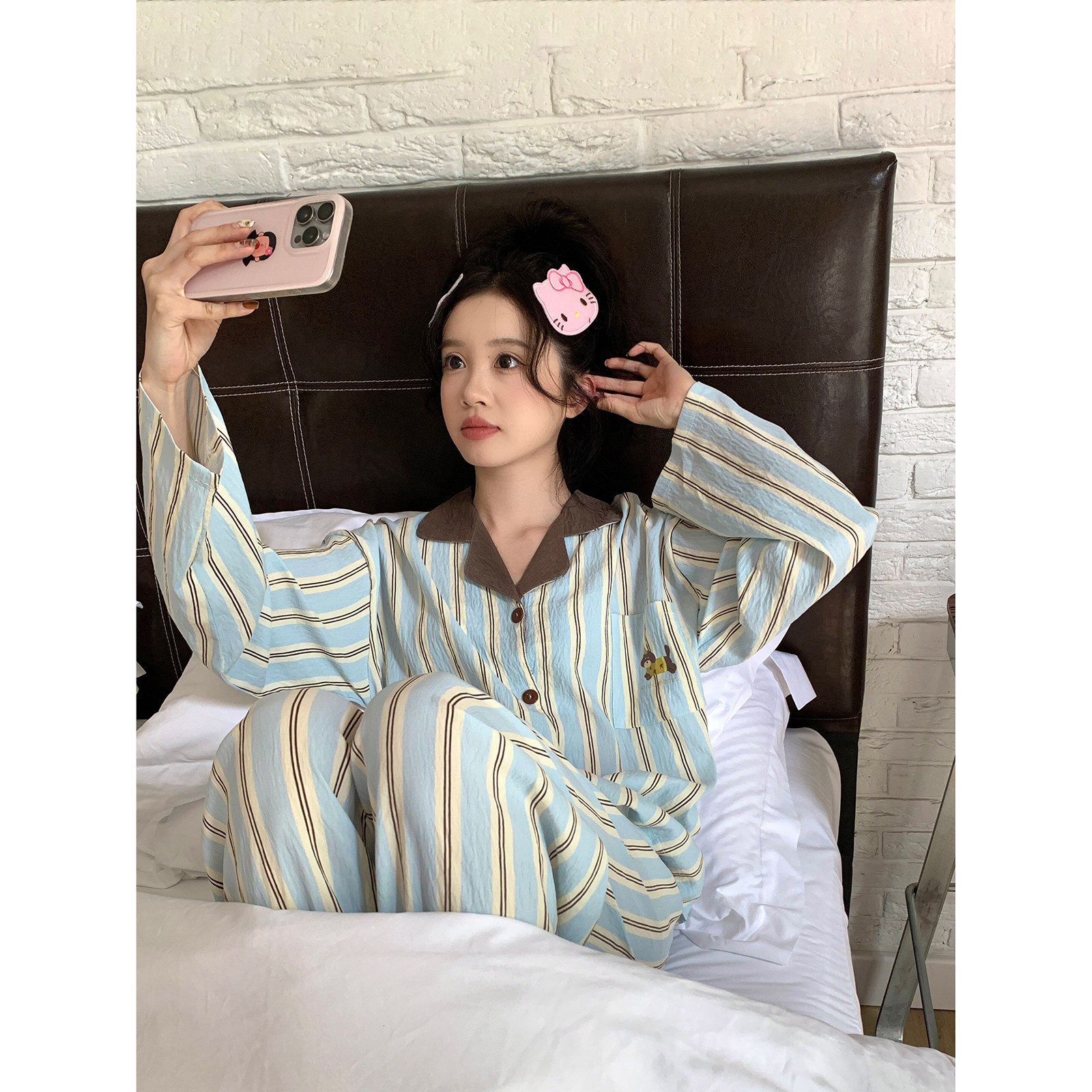纯棉全棉家居服套装 美标睡衣裙 春秋长袖 清仓 男女情侣福利 特价