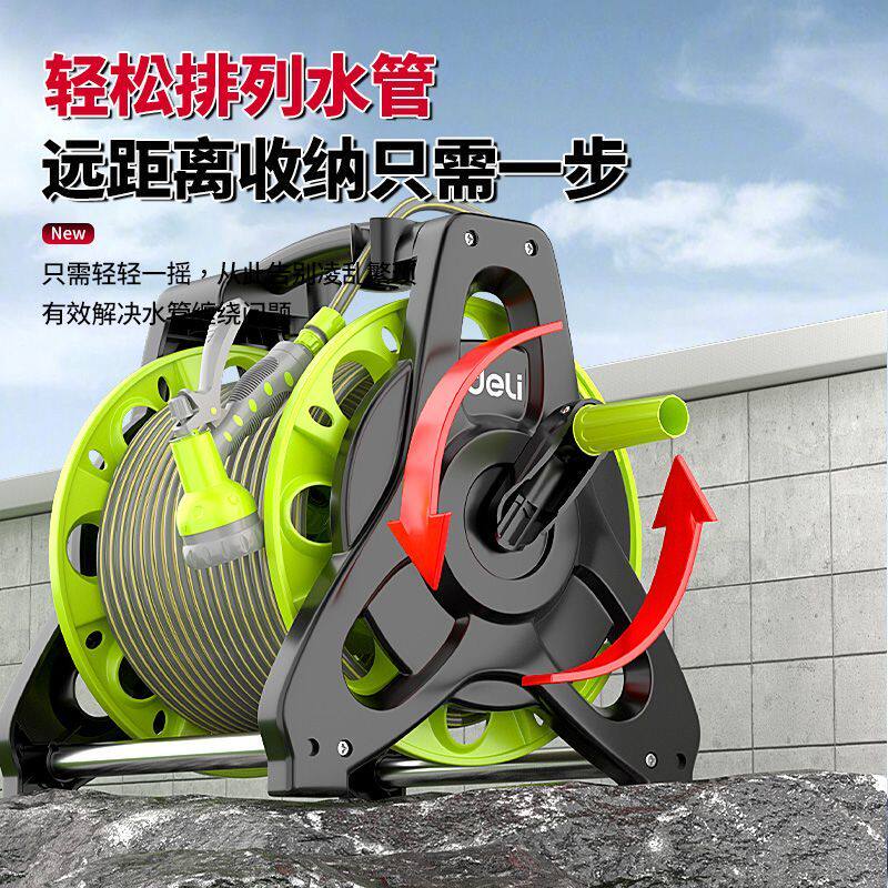 德力西水管软管浇水浇花专用洗车高压水枪家用水管车收纳架收卷器