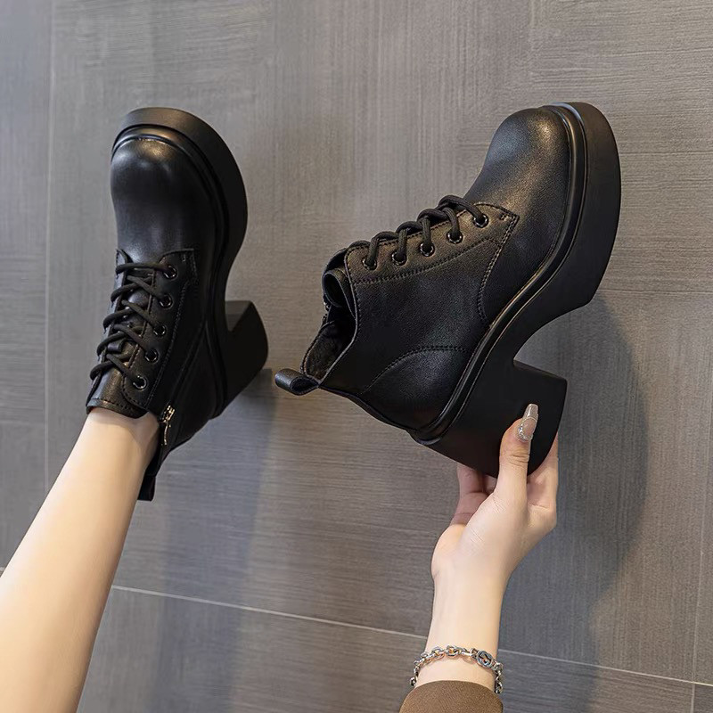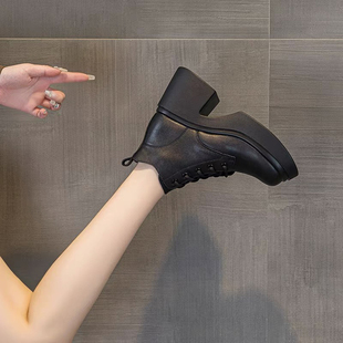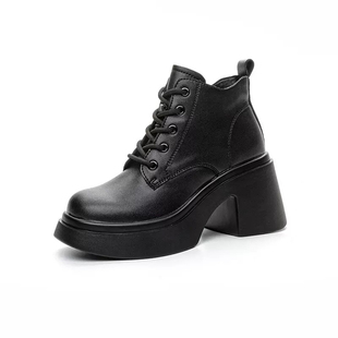 超高跟9CM马丁靴女2025秋冬新款 小个子厚底增高短靴真皮粗跟单靴