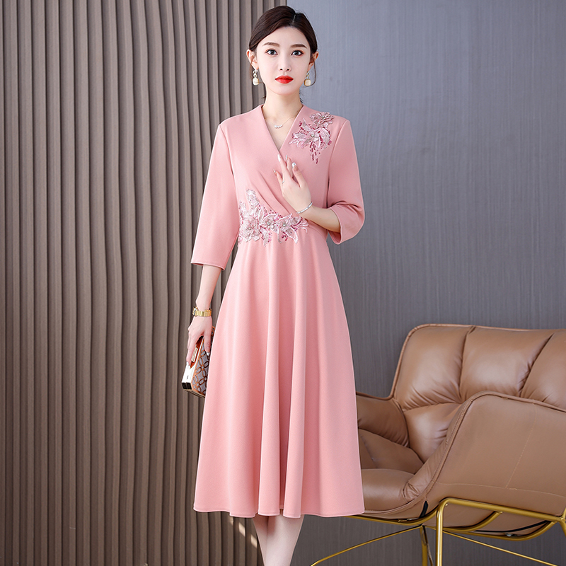 年轻妈妈装 连衣裙婚礼喜婆婆婚宴晚礼服高贵洋气平时可穿结婚春秋