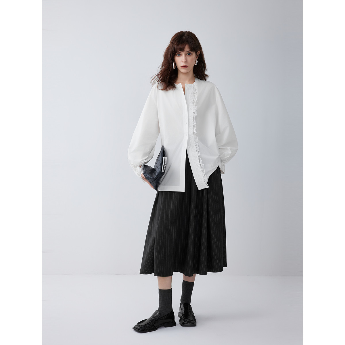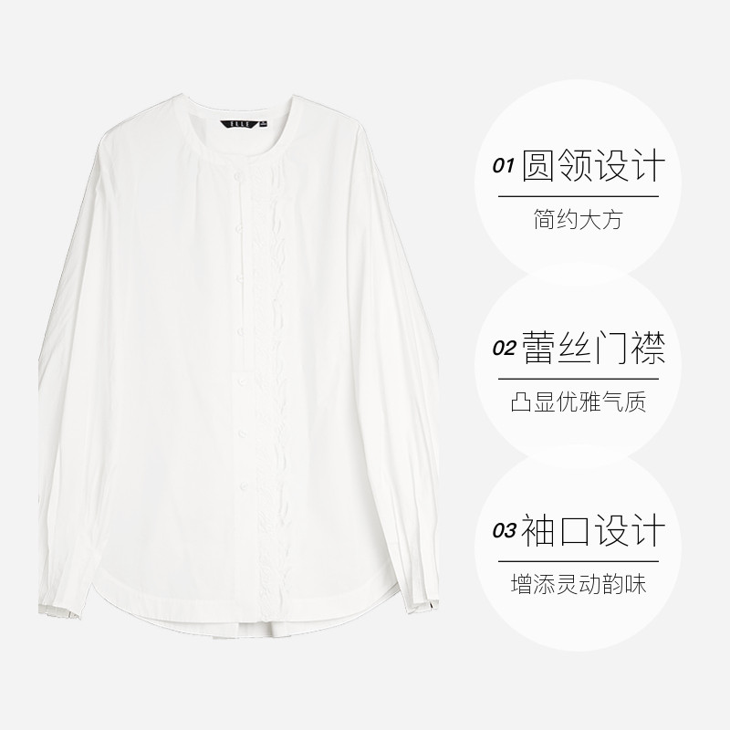 女2026春款 ELLE蕾丝花边白衬衫 书卷巴黎 纯棉休闲衬衣 自营