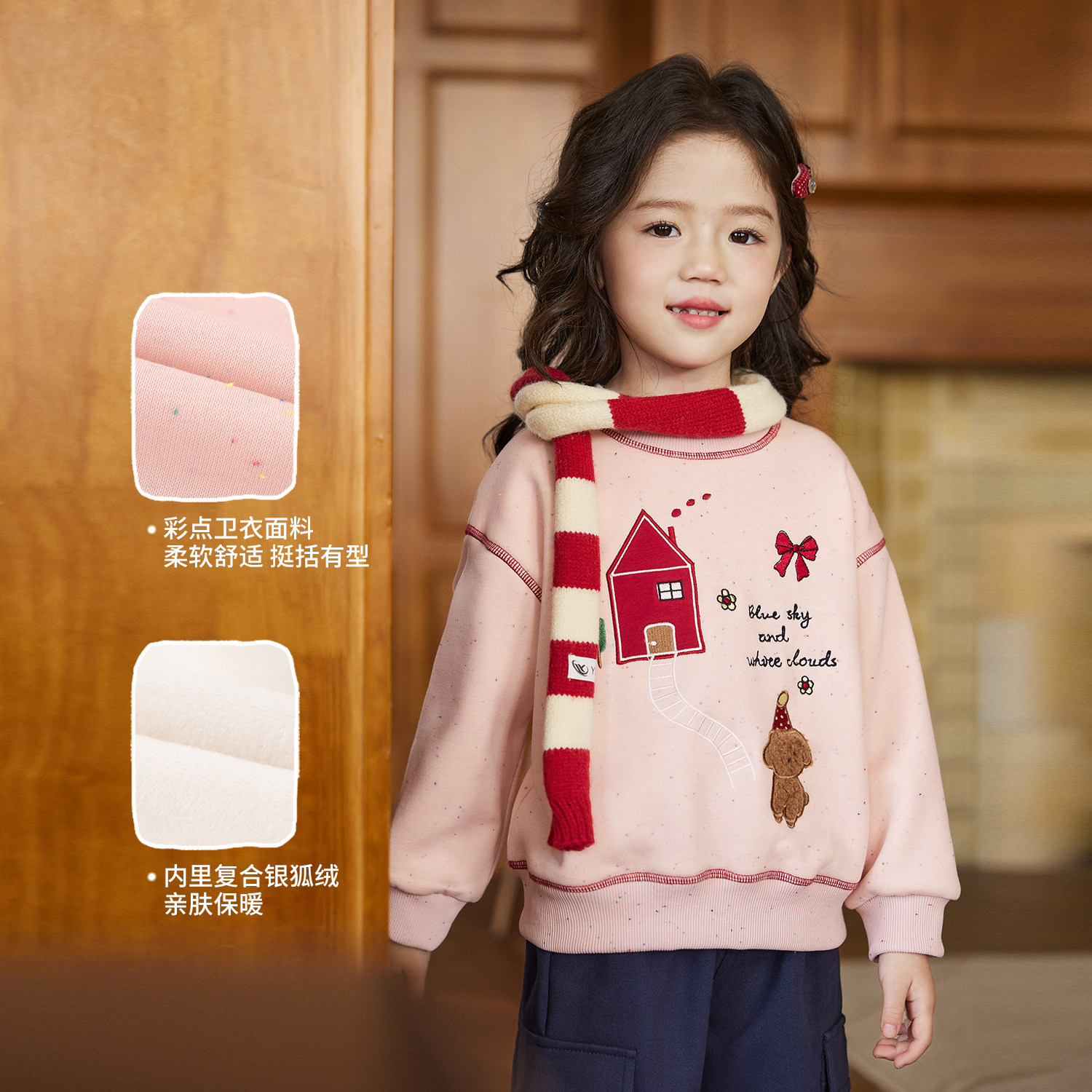 女童保暖上衣 新款 小O宝Okids童装 宝宝400G加绒卫衣女彩点2025冬装