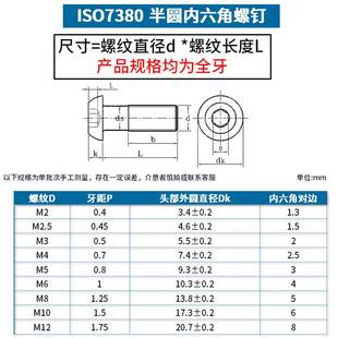 10.9级半圆头内六角螺丝圆头蘑菇头高强度螺栓m3m4m5m6m8m10m12