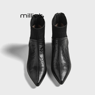 水洗皮切尔西短靴瘦瘦靴 电影画面25冬新款 姜妍同款 73hours女鞋