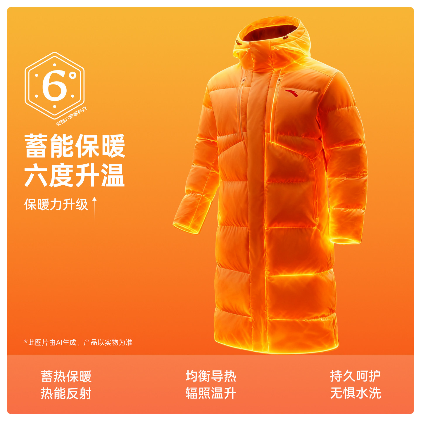 防泼水保暖极寒过膝中长款 新款 中国外套 冬季 安踏六度芯羽绒服男款
