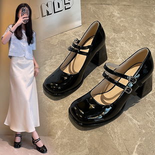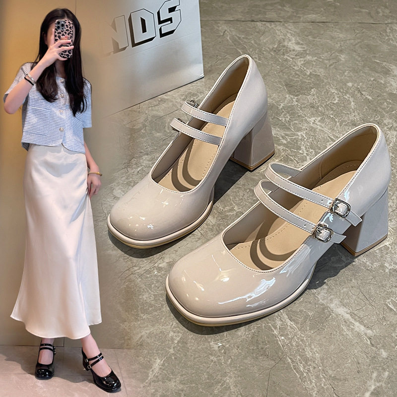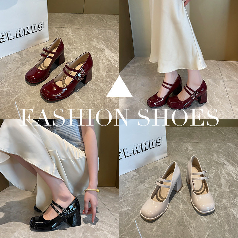 法式 玛丽珍鞋 酒红色百搭显粗跟单鞋 高跟定制 女胖脚大码 B888