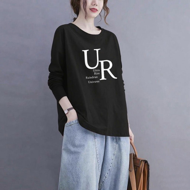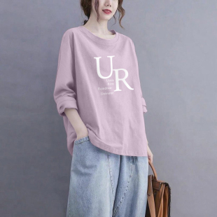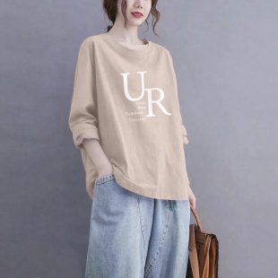 打底衫 气质T恤女宽松休闲时尚 上衣 长袖 外贸出口清仓100%纯棉秋季