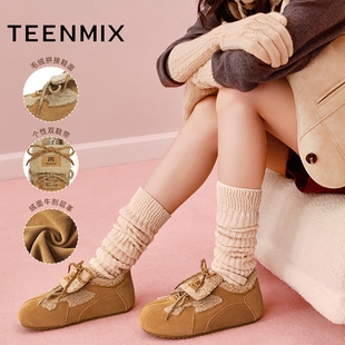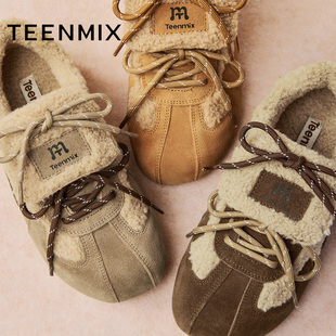 2025冬新款 女运动休闲鞋 BL951DM5 德训鞋 天美意复古厚底加绒毛毛鞋