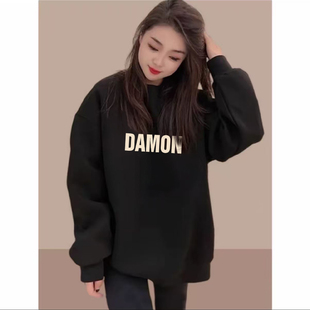 遮肉女装 秋冬季 卫衣减龄休闲宽松显瘦中长款 圆领长袖 加绒上衣 新款
