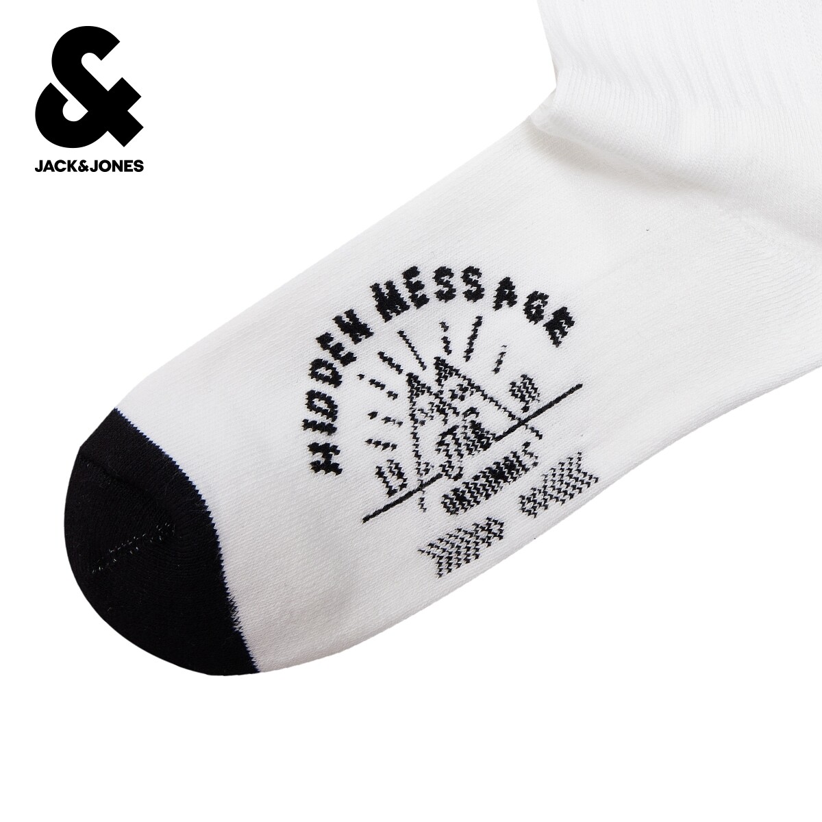 提花字母棉两双装 袜子2026年潮流黑白撞色个性 男春季 杰克琼斯男装