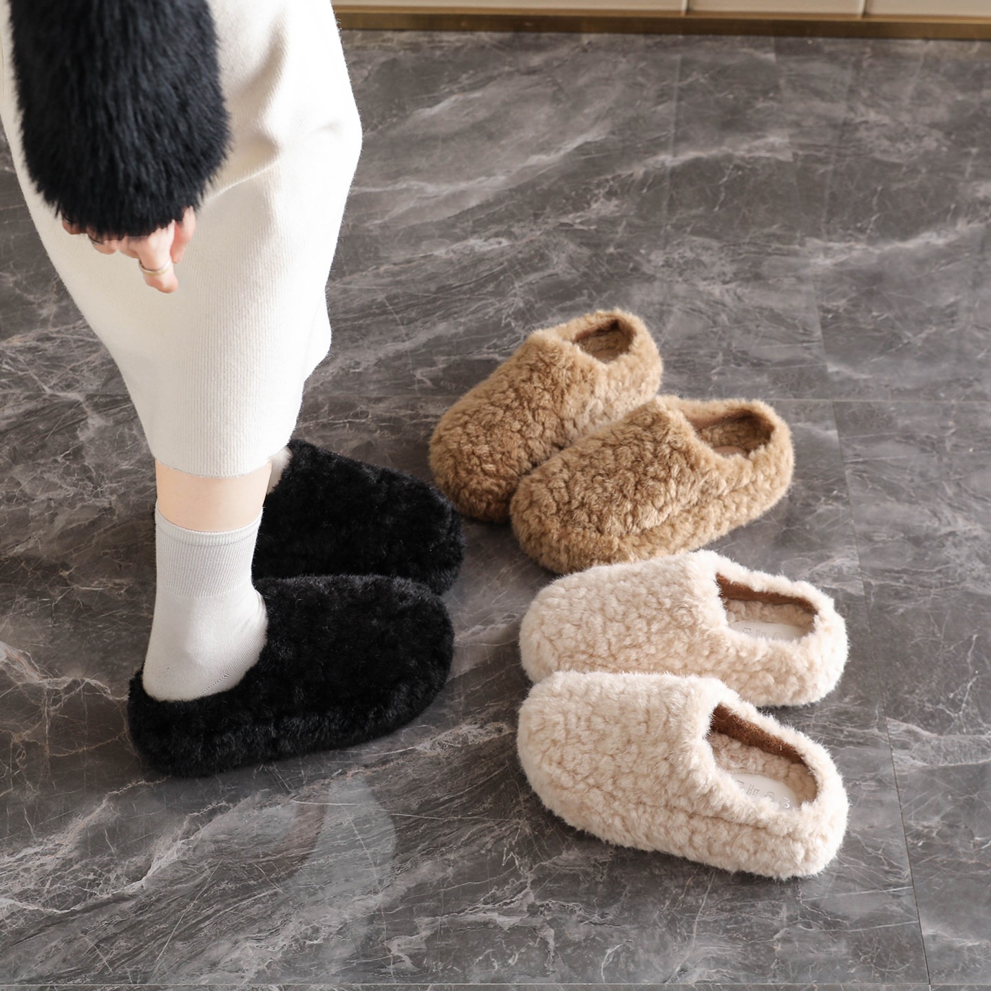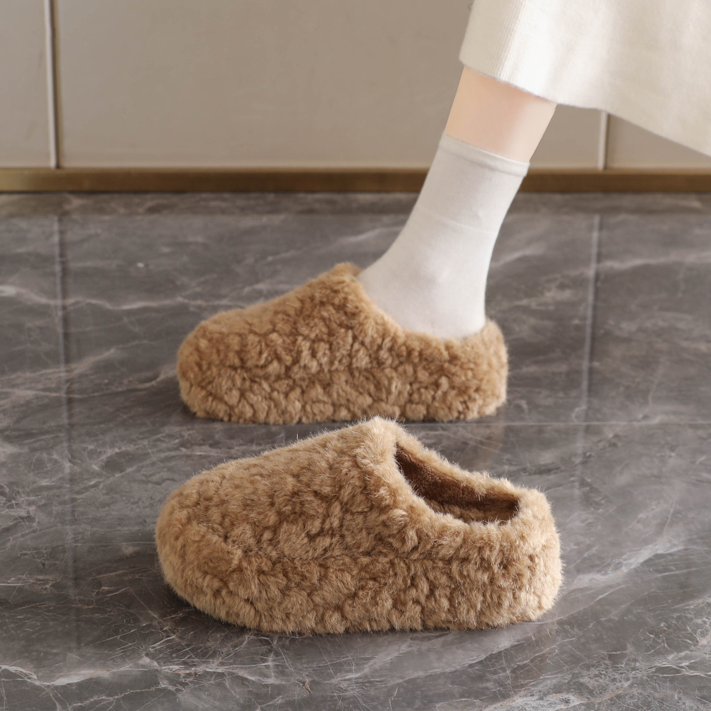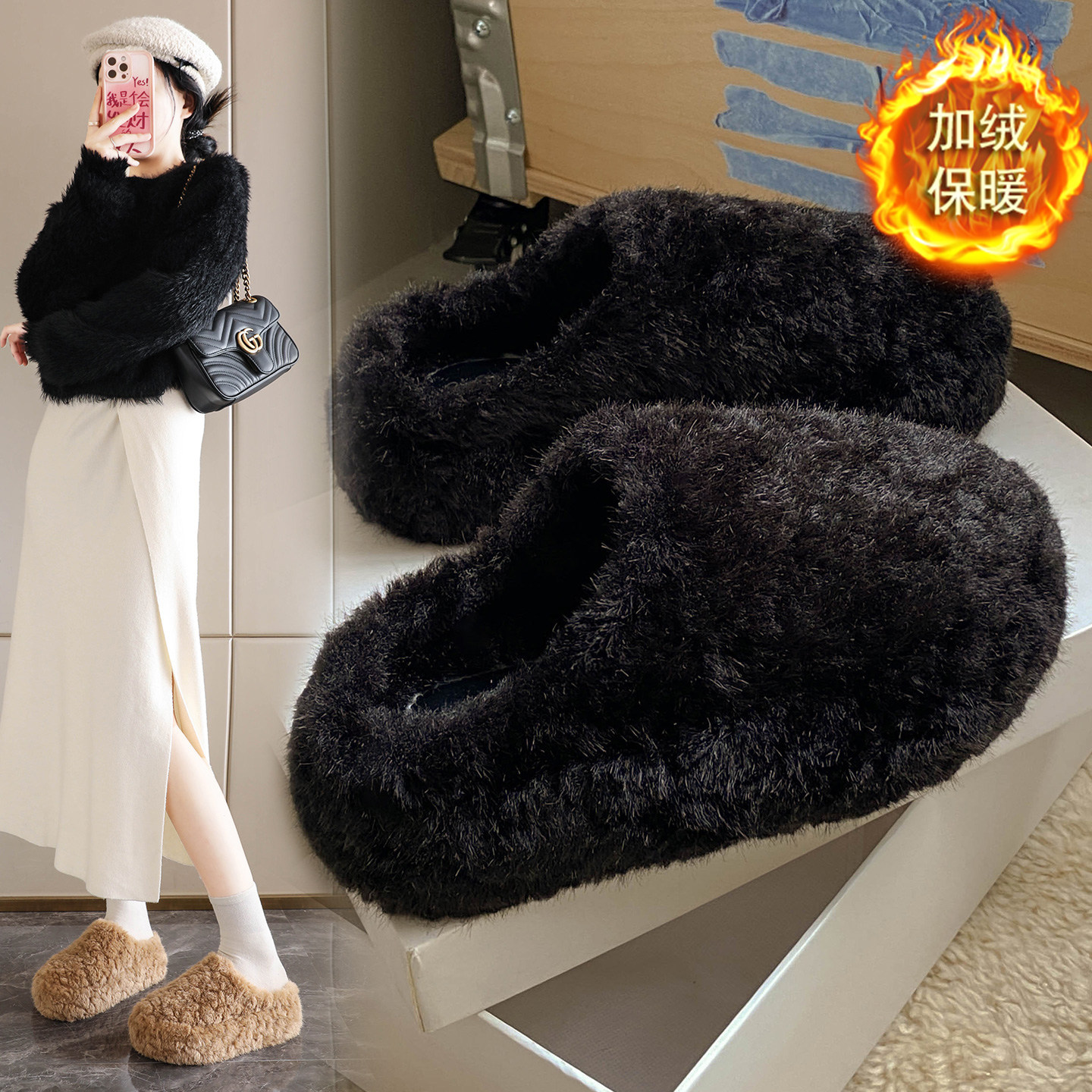 松糕厚底增高跟毛绒居家棉拖 秋季 包头半拖毛毛鞋 女冬外穿2025新款