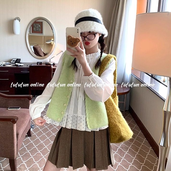 3MER哦哦三妹甜美慵懒风格 保暖外套 纹两面穿羊羔毛马甲背心女冬季