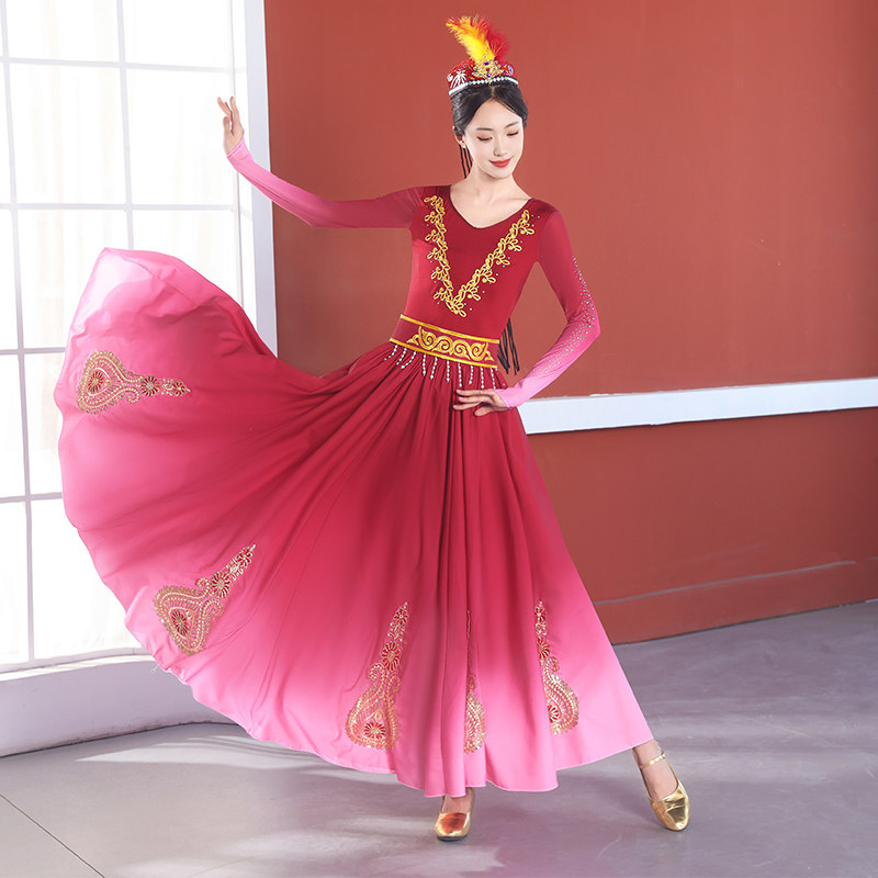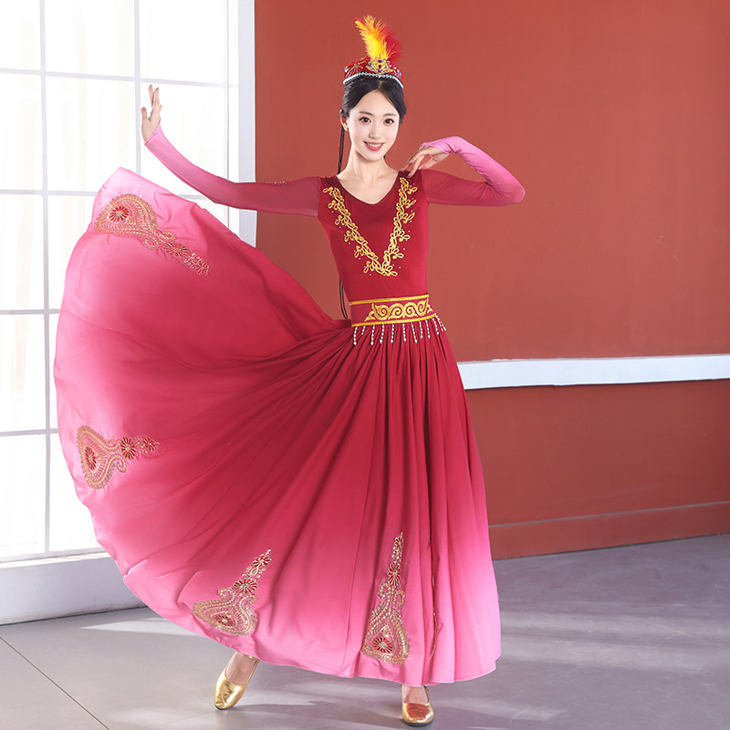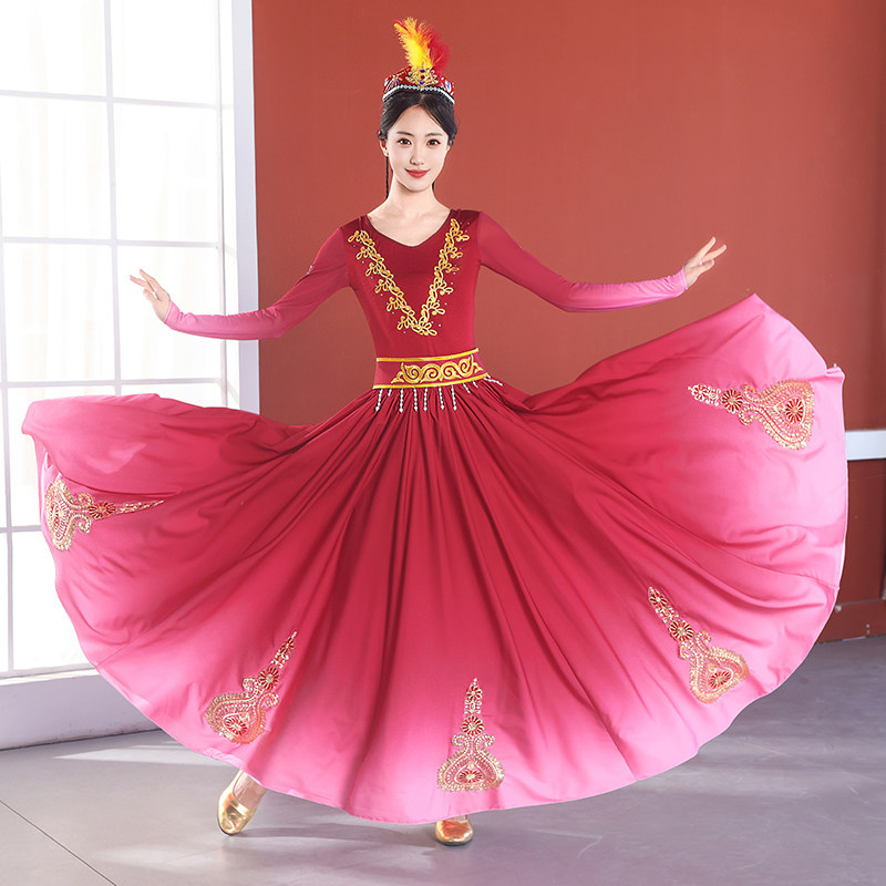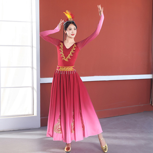 新疆舞蹈演出服新款 维族剧目练习大摆裙子舞蹈服 维吾尔族艺考服装