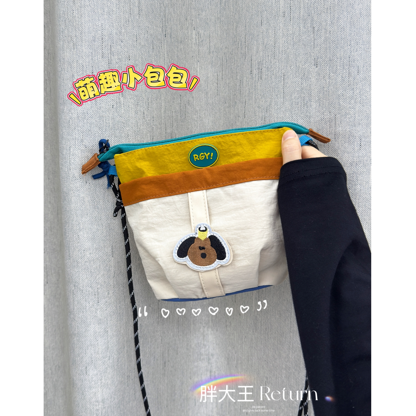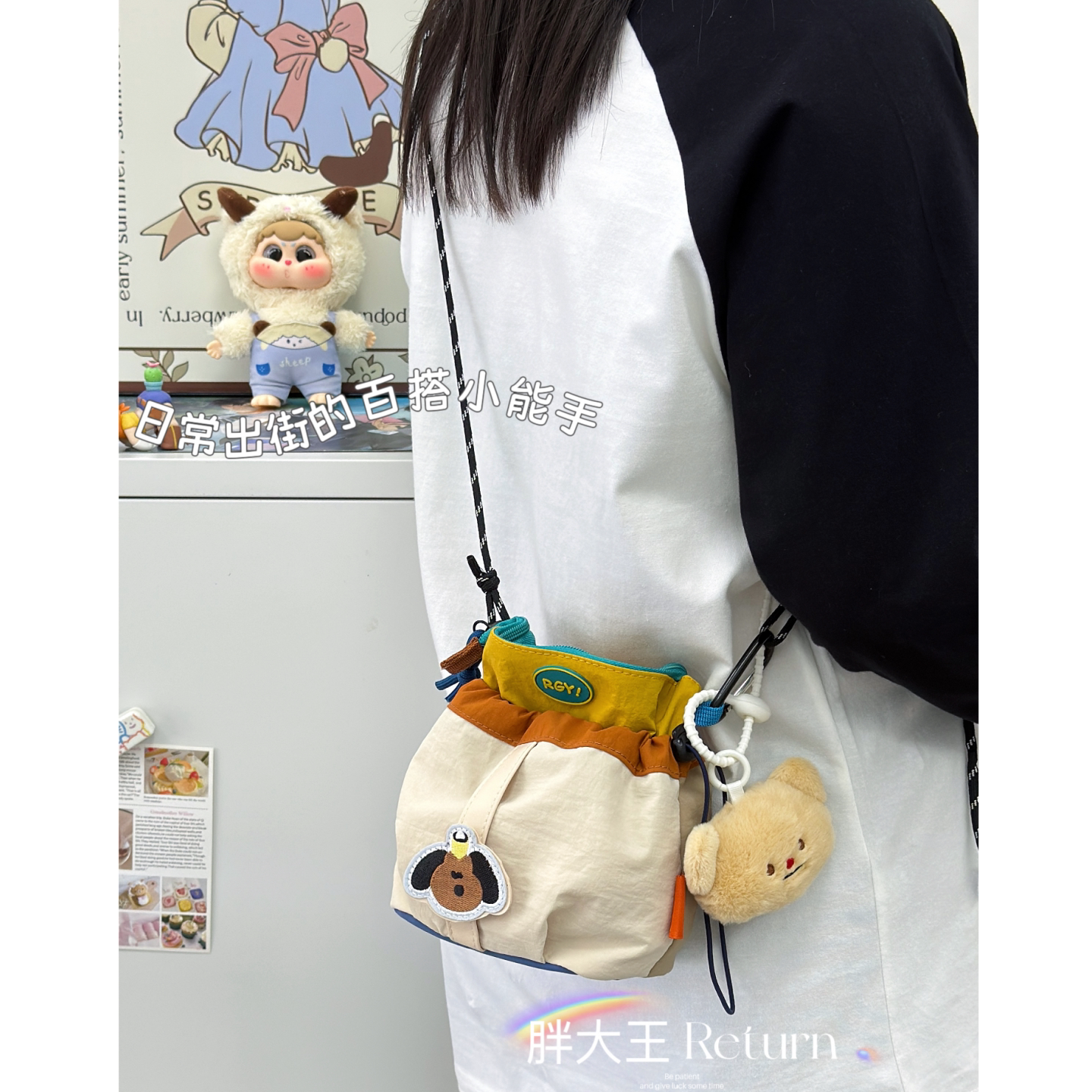 ins风萌趣小挎包美式 复古撞色轻便单肩斜挎包女娃高颜值可爱小包