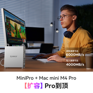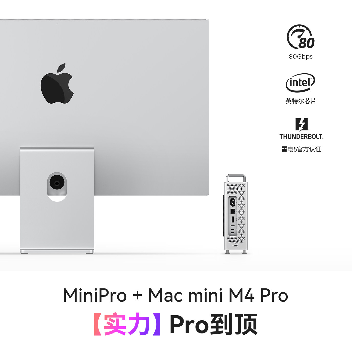 奥睿科MiniPro雷电5适用Macmini拓展坞M4Pro机箱M.2硬盘扩容2T内存多接口苹果扩展坞80Gbps桌面主机支架底座