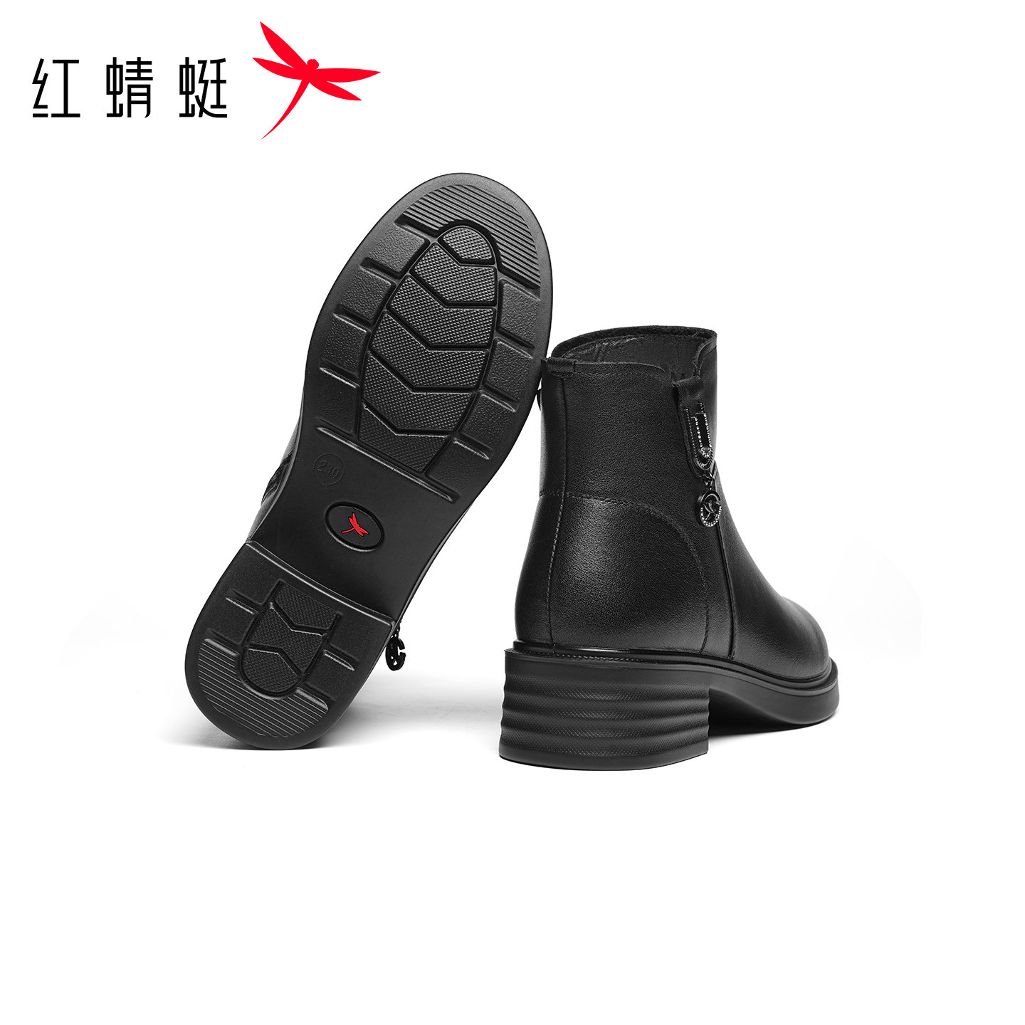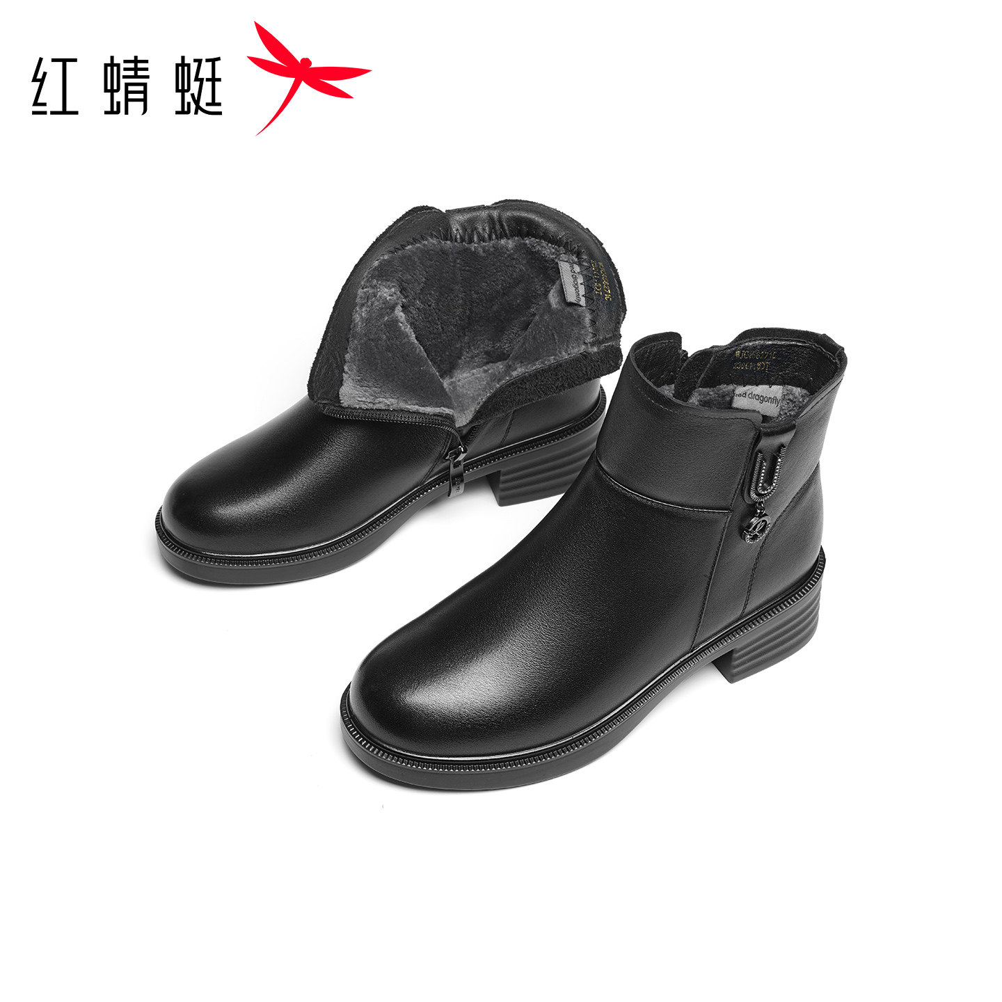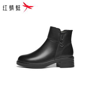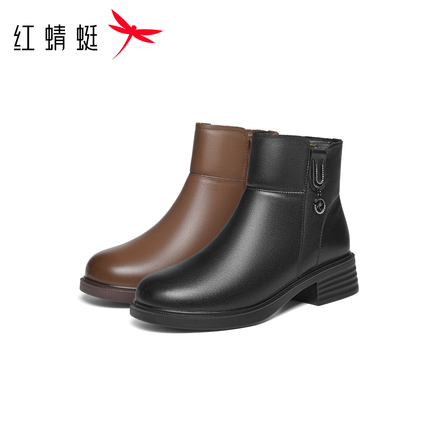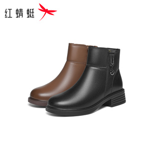 中年女士短靴子真皮加绒保暖皮鞋 红蜻蜓妈妈鞋 女鞋 新款 子2025冬季
