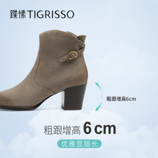 蹀愫秋冬棕色增高6.5牛仔靴牛皮时装 短靴TA657
