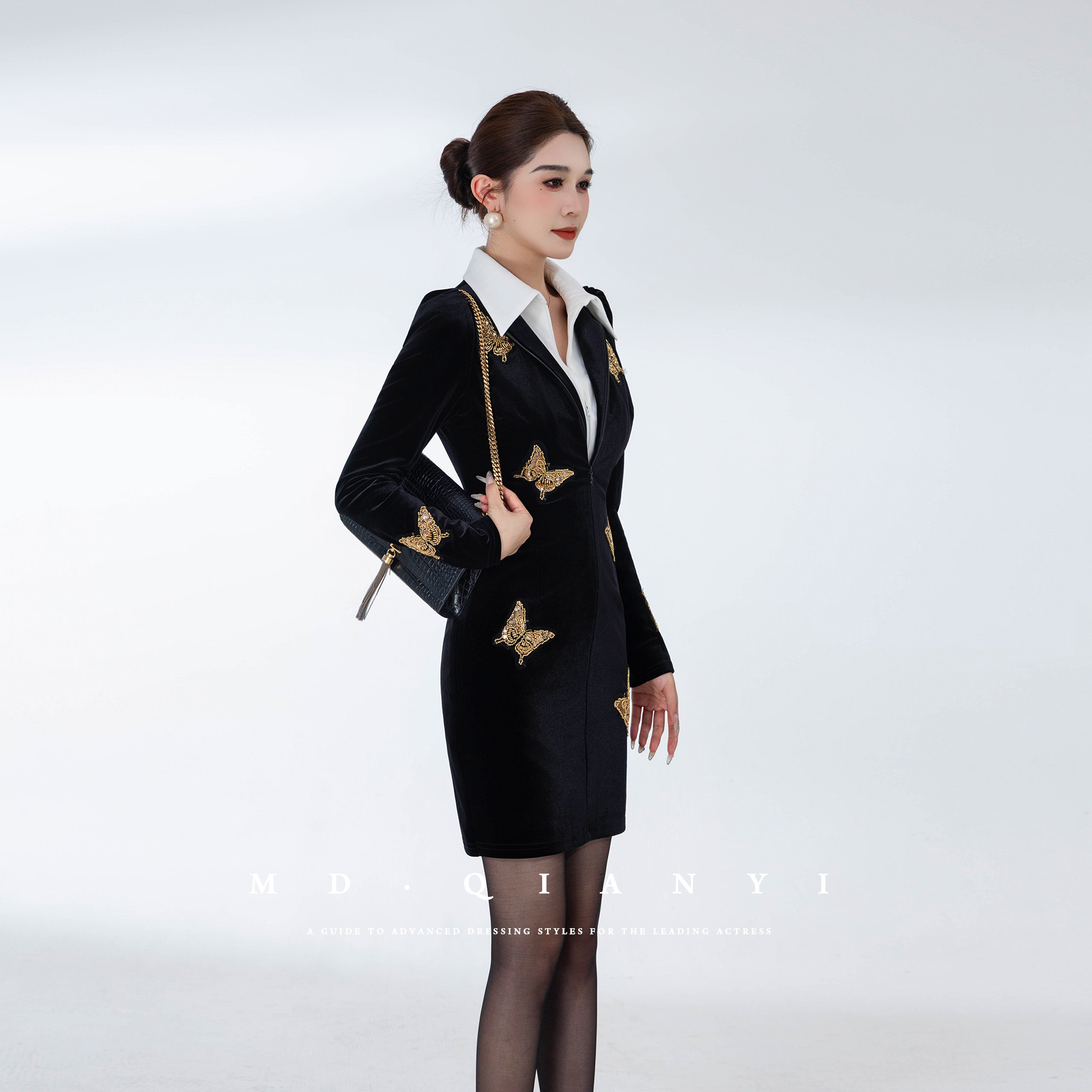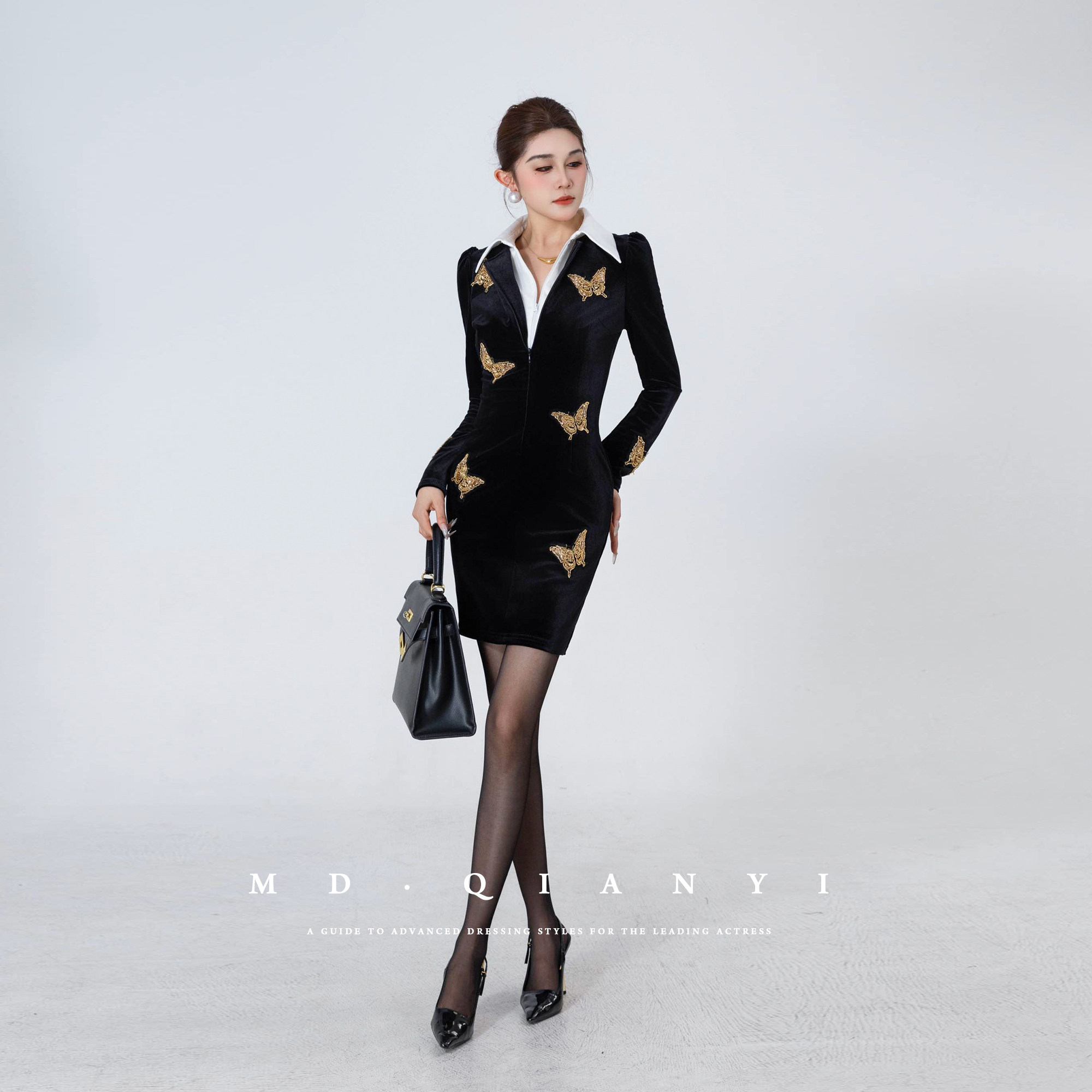 显瘦气质时尚 MD千亿 新款 2025秋季 休闲连衣裙 墨绒蝶叙