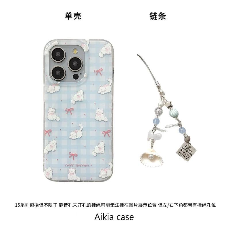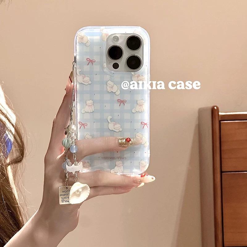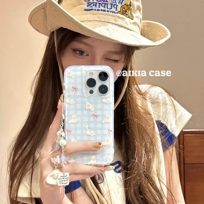 30奶蓝格子纹蝴蝶结猫咪40i X20 畅玩50plus软女 80GT手机壳70se 磁吸支架适用华为荣耀100女90华为magic6pro