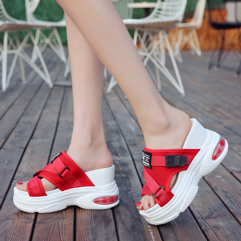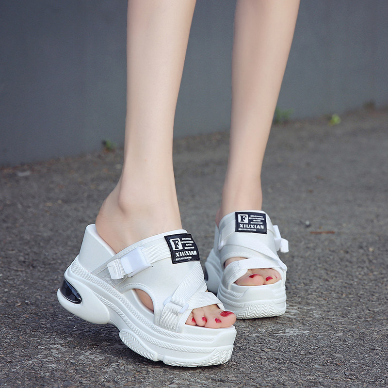 外穿时尚 女2020新款 百搭厚底凉拖 半拖鞋 夏懒人增高坡跟透气高跟鞋