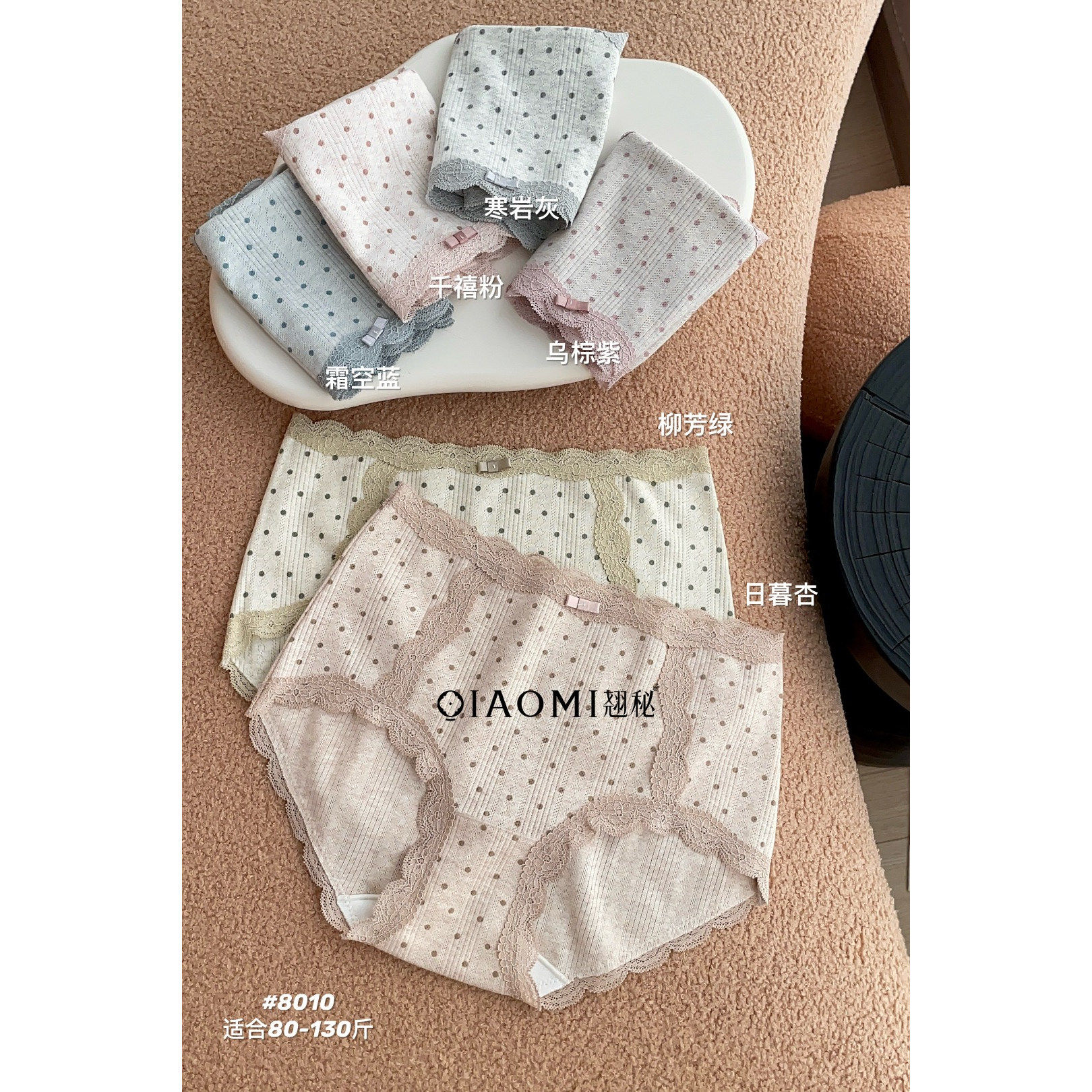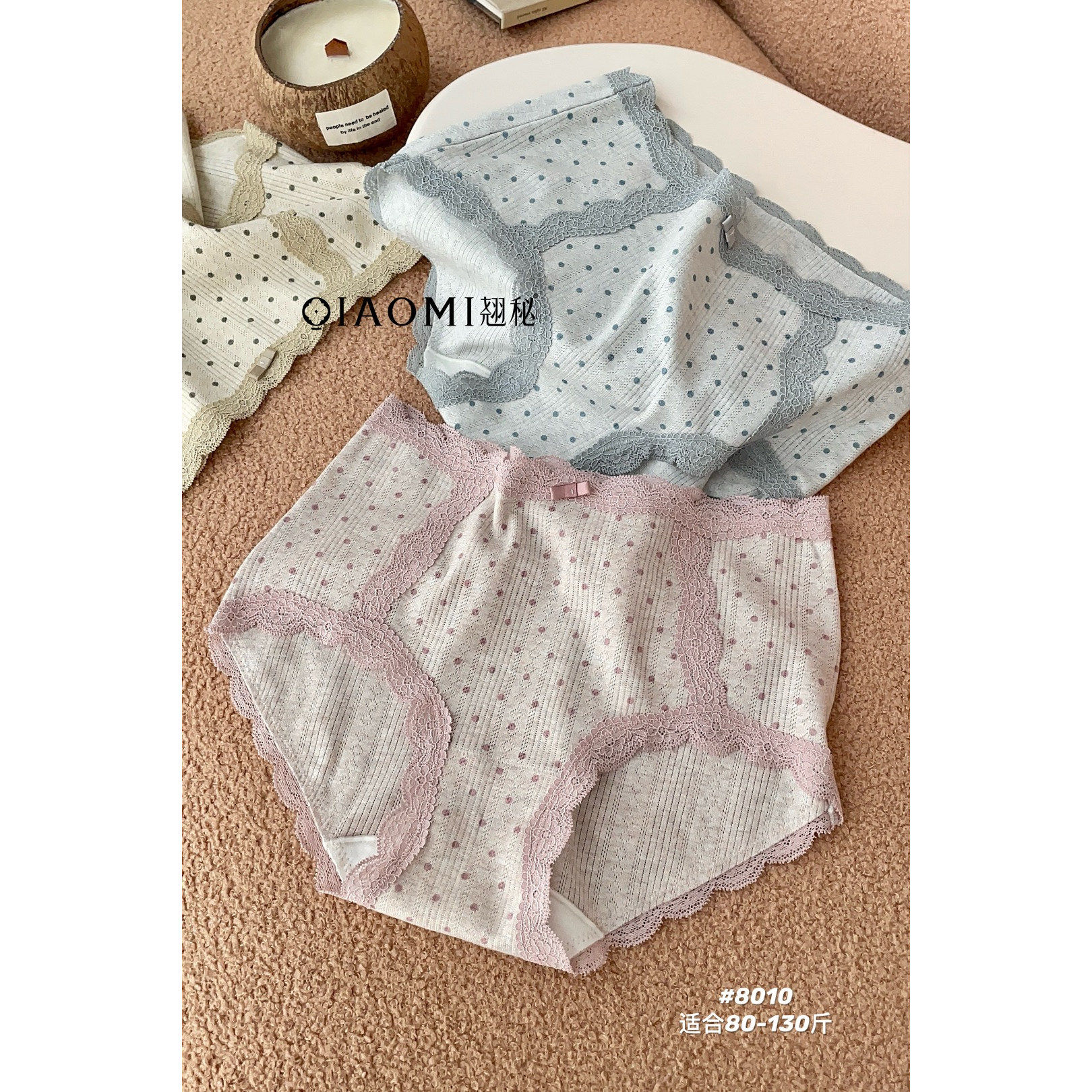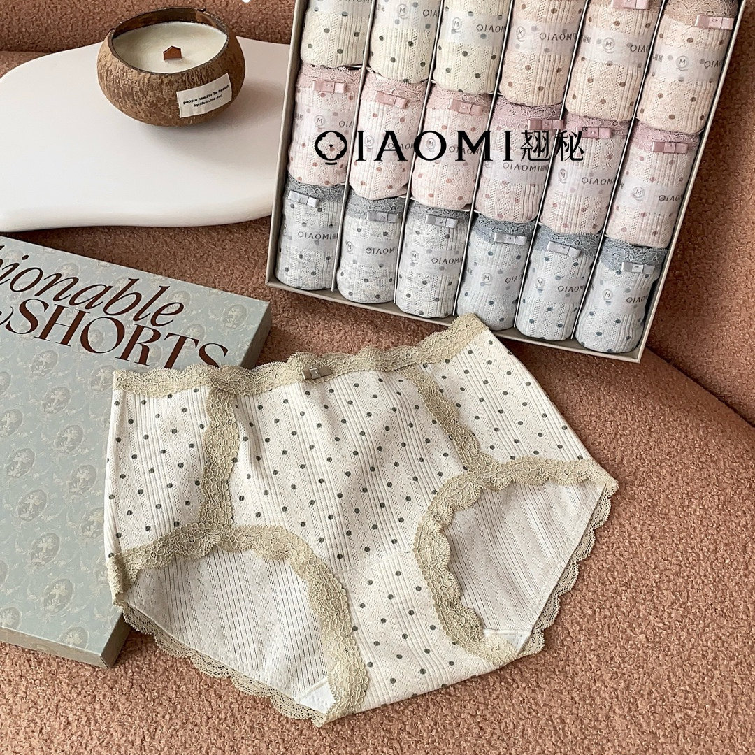 翘秘8010女士内裤 甜美少女风柔软蕾丝包边不勒腰裆波点三角内裤