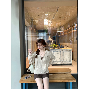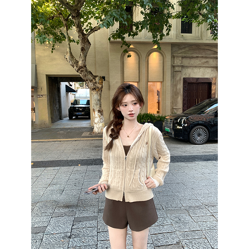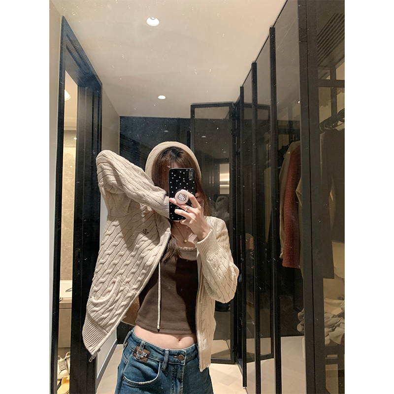 百搭软糯毛衣外套女 设计感秋季 珍珍家 南韩feel绞花针织连帽开衫