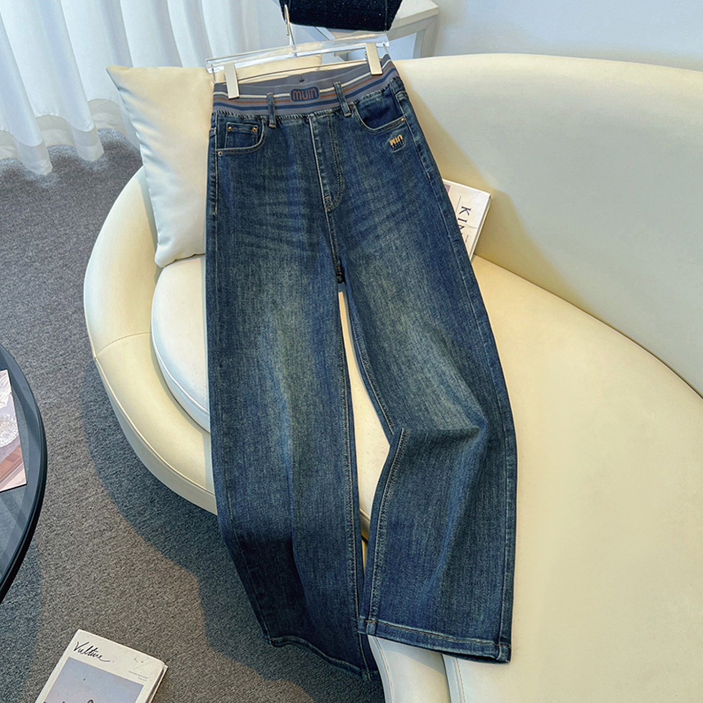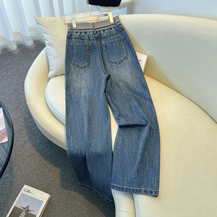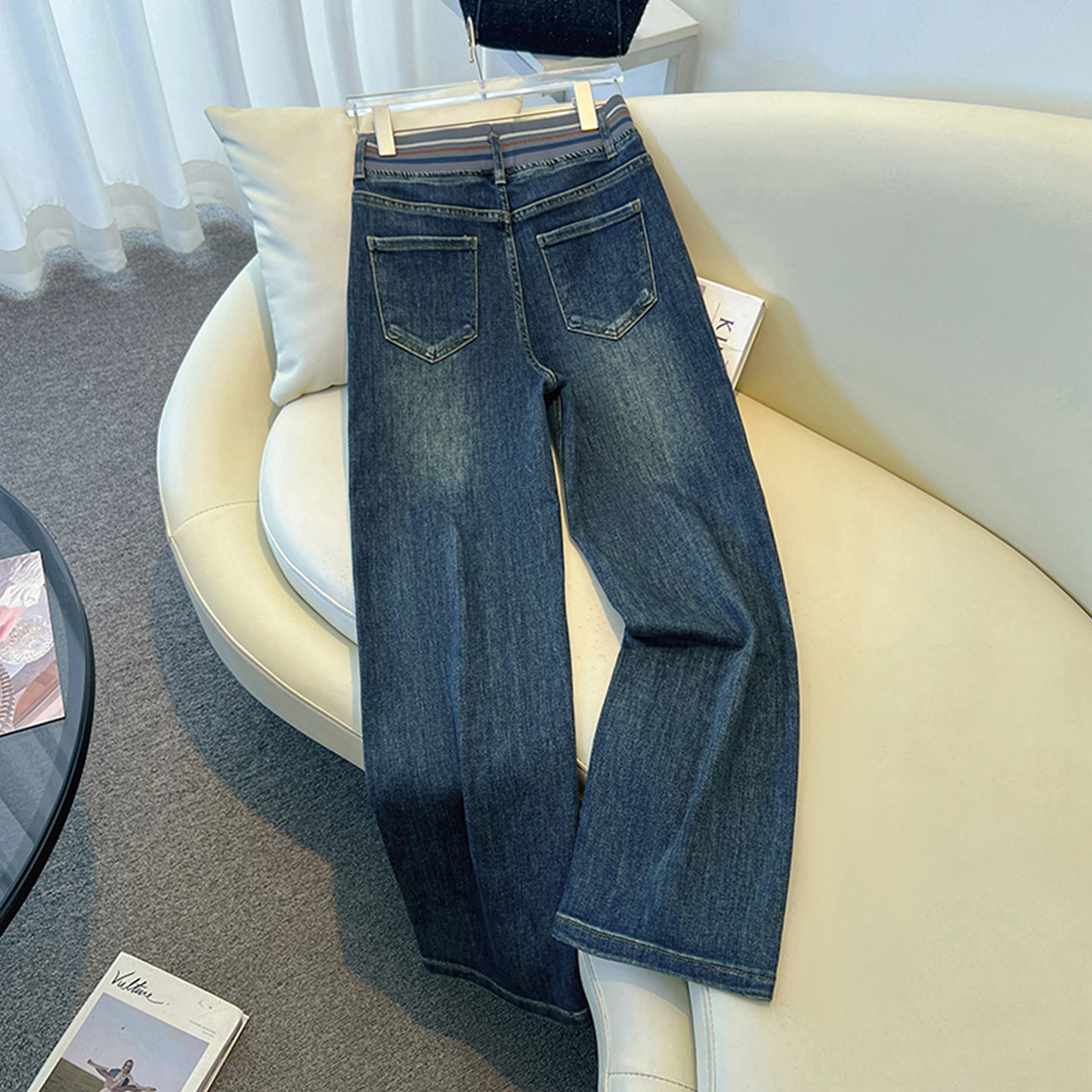 秋季 百搭显瘦直筒裤 高腰拼接牛仔裤 阔腿裤 女休闲宽松窄版 2025新款