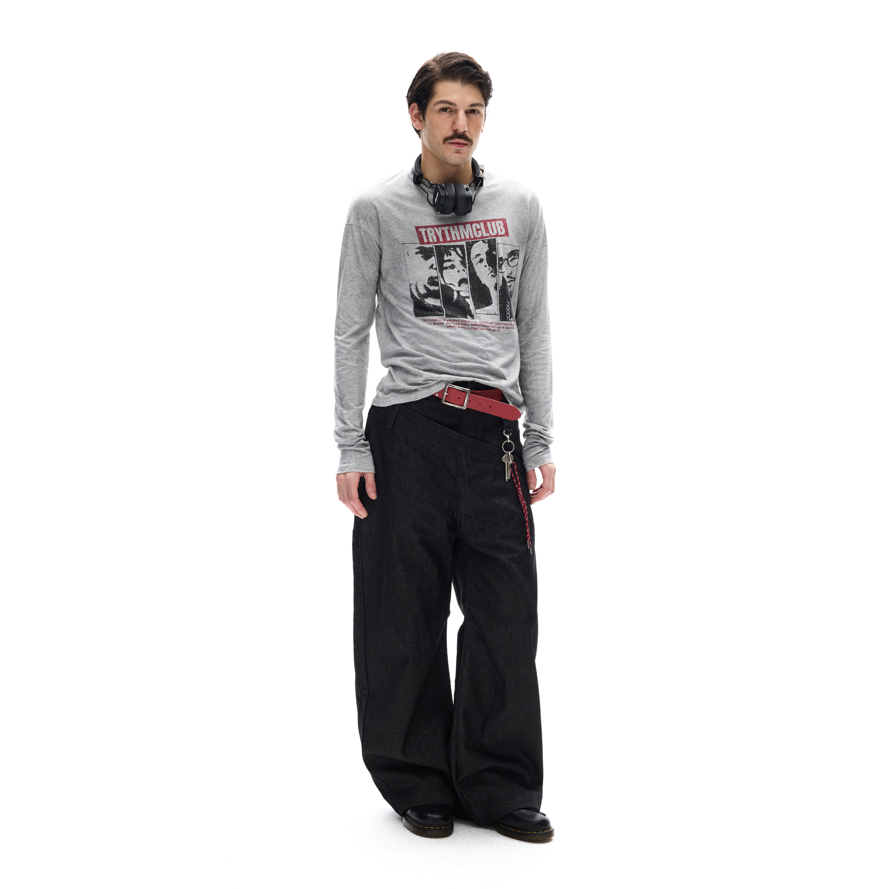 百搭设计感上衣ins T恤男女修身 MADWITCH美式 做旧扎染字母印花长袖