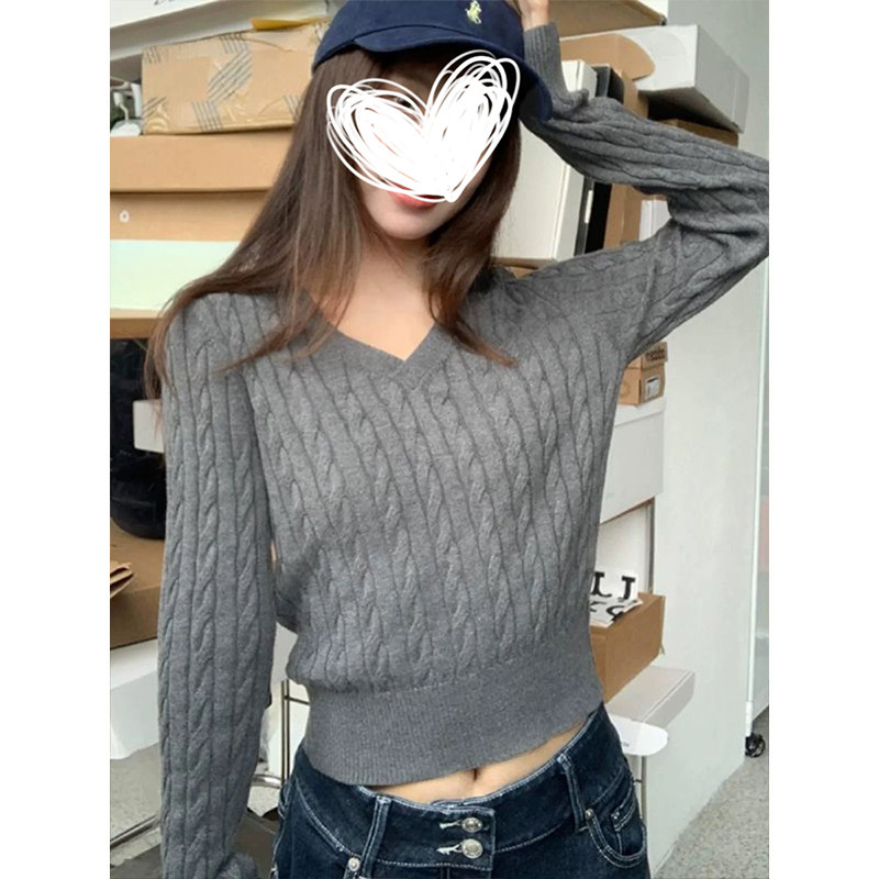 上衣 针织衫 MosesQueen魔西女王麻花v领毛衣女秋冬内搭打底衫 修身
