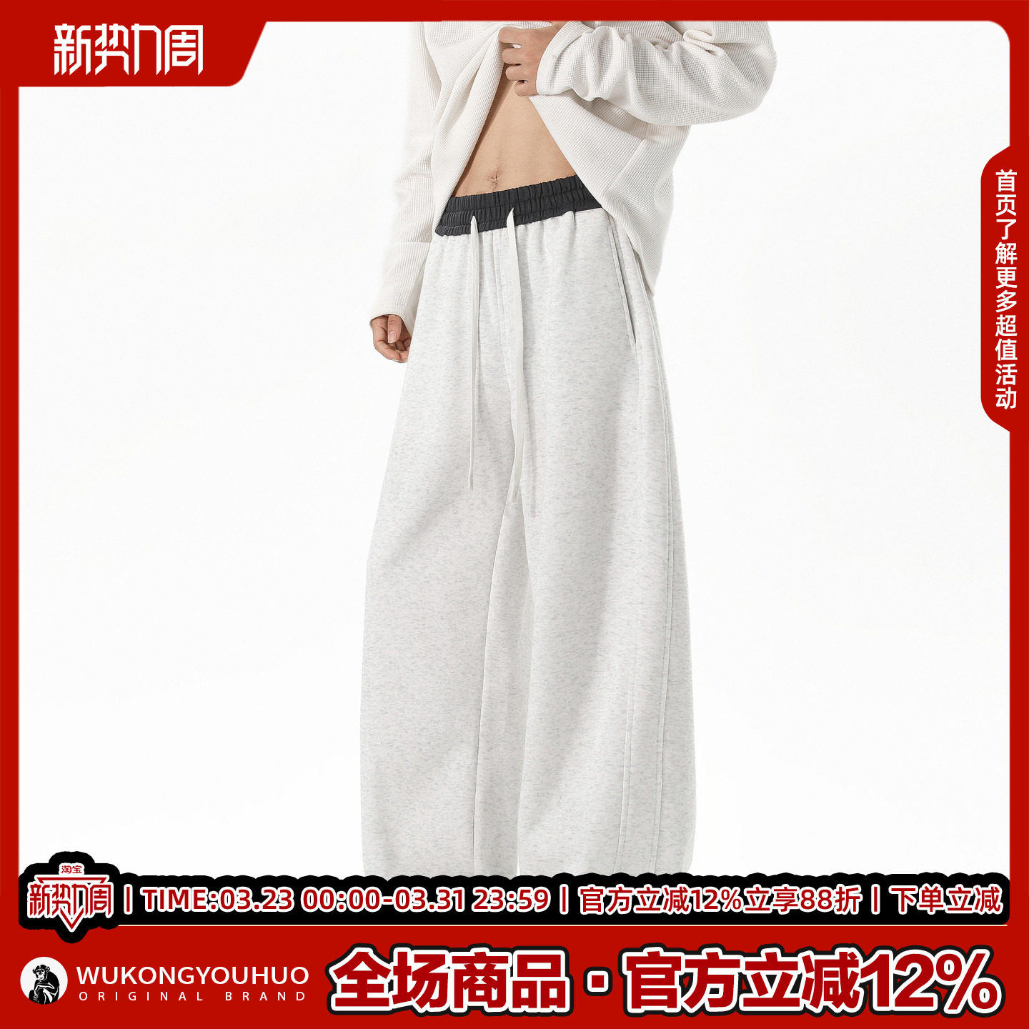 宽松阔腿百搭长裤 男女秋季 撞色抽绳松紧运动卫裤 悟空有货潮牌美式