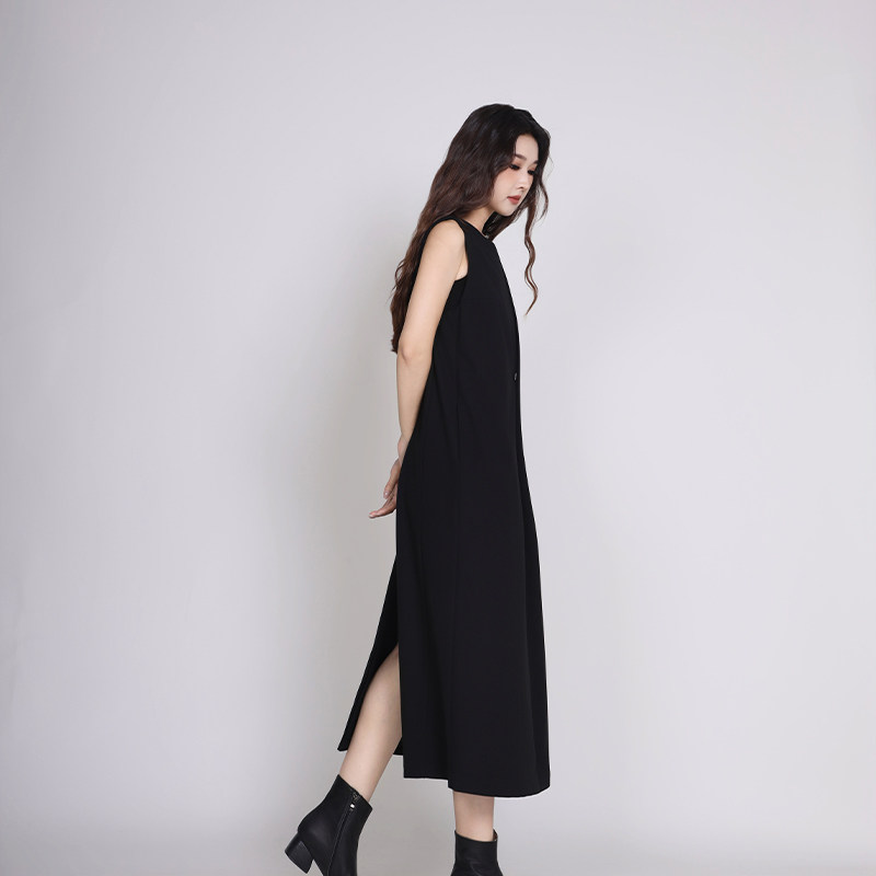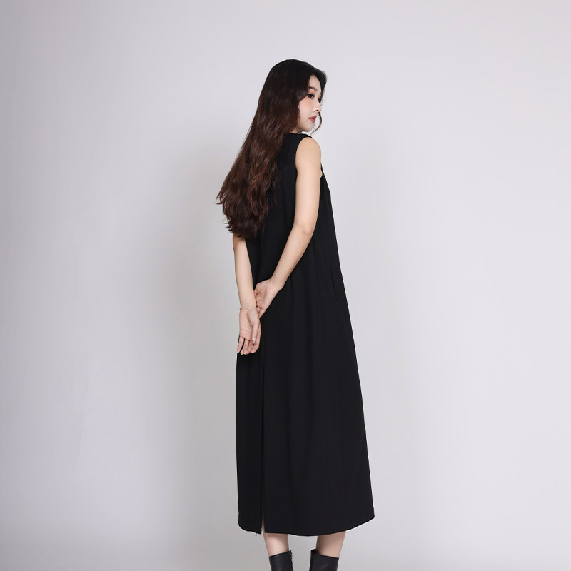 连衣裙无袖 简表达25冬新款 长裙显瘦纯色DLY51002 express Jane