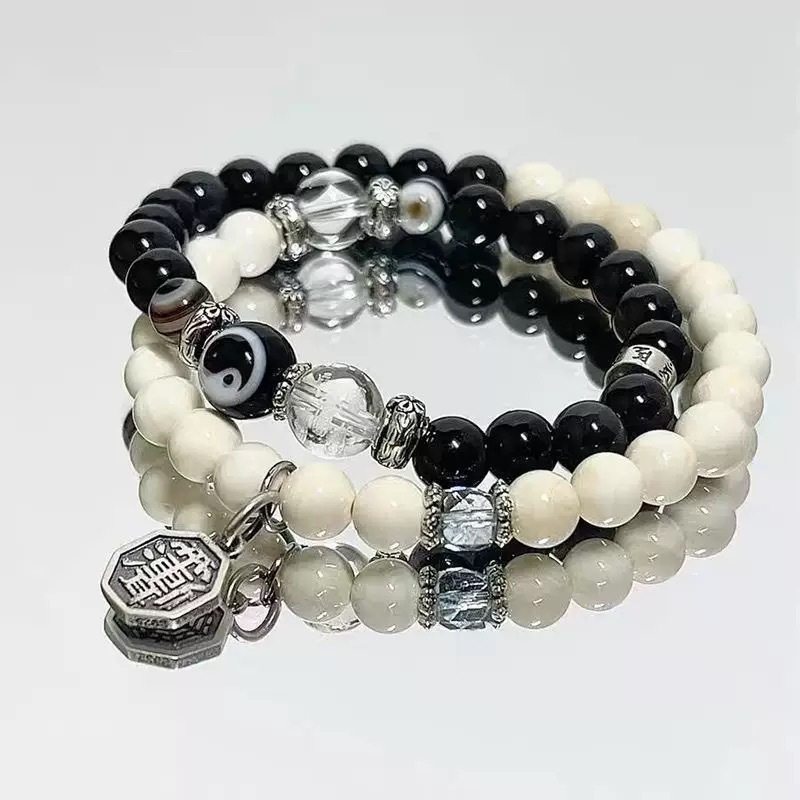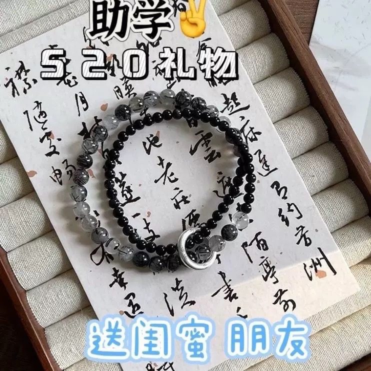 简约百搭黑玛瑙黑耀石佛珠人造手串学生情侣水晶男女礼物通用手链