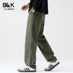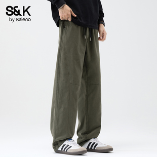 2025秋冬加绒潮牌宽松直筒运动休闲长裤 男士 裤 班尼路SK纯棉工装
