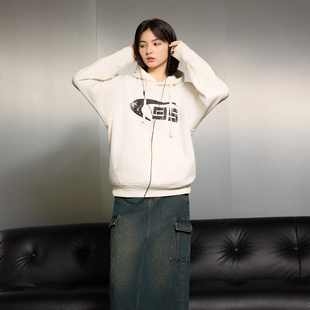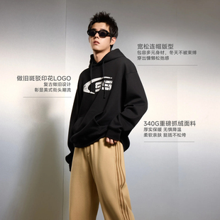 连帽针织衫 字母印花加绒加厚情侣装 新款 美特斯邦威卫衣男2025冬季