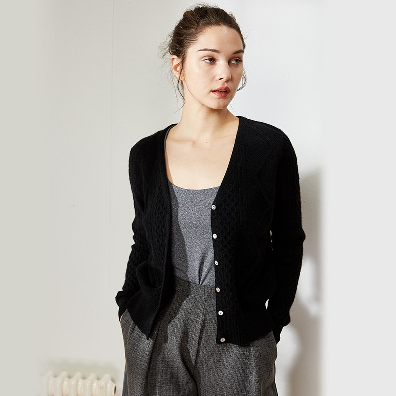 外搭毛衣 V领绞花100纯山羊绒针织衫 绒典羊绒开衫 女2025秋冬新款